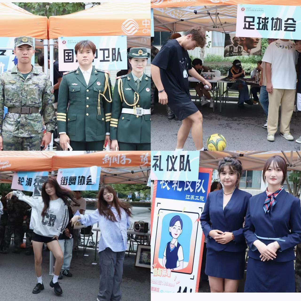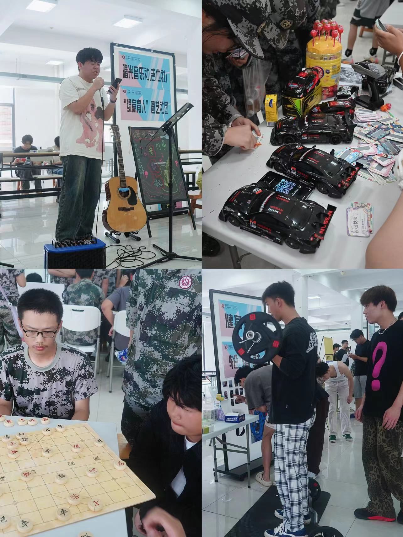 思想政治、兴趣爱好、学术专业、公益服务、传统文化、科技创新、体育竞技等七个大类学生社团齐聚招新集市,充分结合自身特点,以各具特色的方式展现社团风采。这里有人文艺术的辉映交织,有体育运动的蓬勃热情,有学术科技的思维碰撞,有公益服务的爱心传递。棋艺社吸引了同好者现场对弈,在喧闹中独守沉静;书画协会处翰墨飘香,继承传统,赓续文脉;跆拳道、武术协会展示着中华武韵,刚柔并济;音乐类社团“先声夺人”,各色器乐登场亮相;礼仪社、国旗班、雅韵国学社成员身着特色服装以美“服”人,带给同学们华美的视觉盛宴;街舞社伴随动感十足的音乐,大秀舞技,“燃爆”全场;各色公益服务类社团分享青春故事,为新生种下爱与希望的种子……