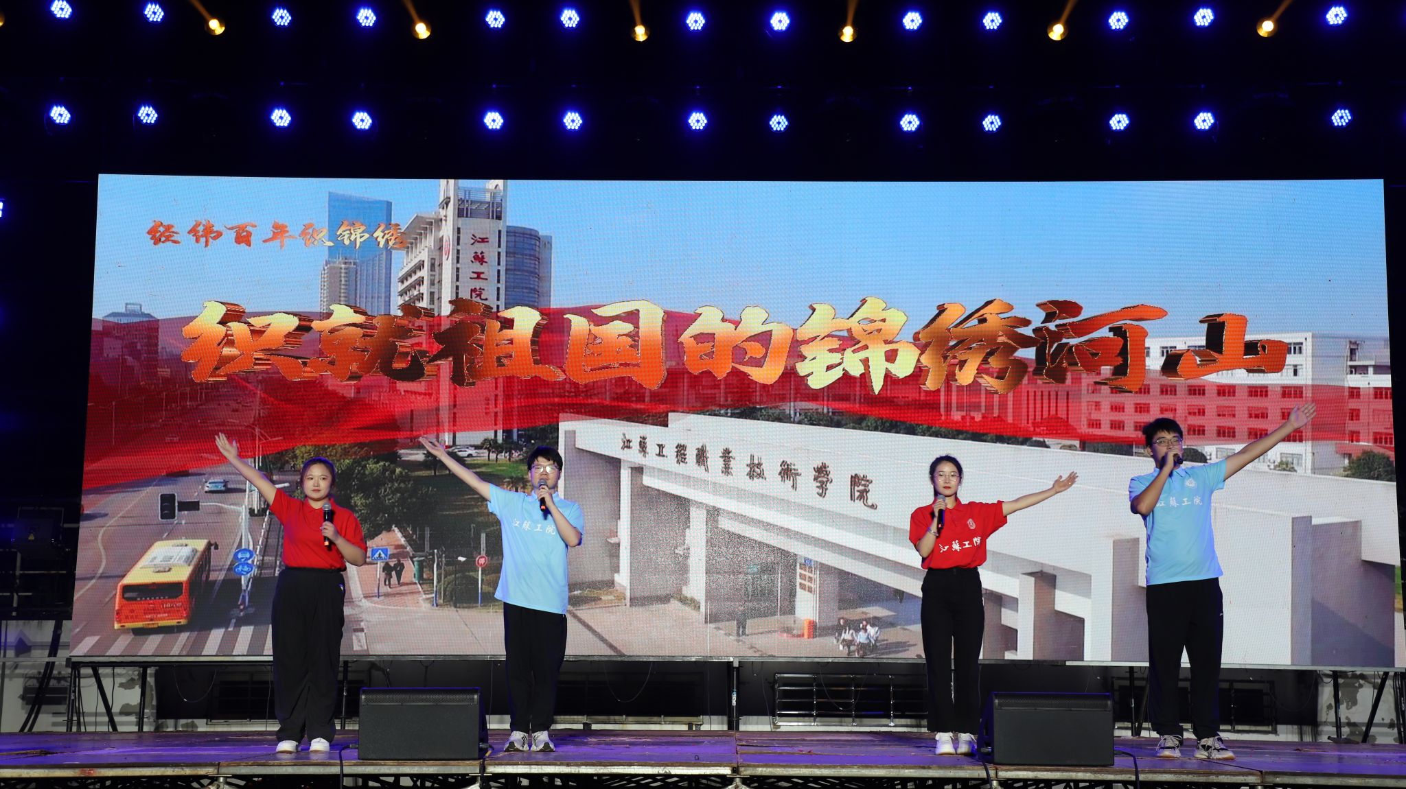 原创歌曲《青春工院》拉开了晚会的序幕,关工委老教师带领青年师生共同演绎出青年一代的精神风貌,诠释了学校服务地方经济发展的使命与担当;情境舞蹈《点点红》通过现代舞描绘了点点红色汇聚成燎原之势,点燃民众奋起抗争的决心与意志;经典歌曲大联唱《我爱你,中国》《风吹麦浪》《龙的传人》《春风十万里》热血激昂的歌词、深情款款的旋律,唱响了对祖国的深情告白;社团国风秀《锦绣汉唐》将千年华夏服饰风韵演绎得淋漓尽致;老挝留学生舞蹈表演《母亲的家》用独特的动感和无限的创意为现场观众呈现出一场视觉盛宴;朗诵《经纬百年织锦绣》用真挚饱满的情感、铿锵有力的语言,以工院优秀校友为脉络,展现了工院人精益求精的工匠精神;齐舞《骁》跳出了新时代青年勇往直前、锐意进取的“骁勇”精神;幕布剧《强国有我》充分展现了广大青年接过前辈手中的火炬,赓续红色血脉,传承红色基因的使命和责任。