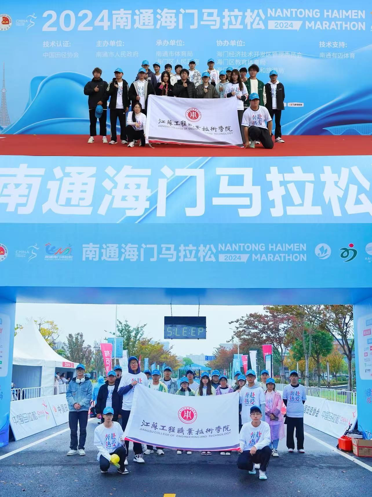 11月10日,“奔赴热爱,遇謇海马”2024年南通市海门马拉松赛鸣枪开跑。我校450名大学生和1名带队老师作为大赛志愿者以饱满的热情、昂扬的风貌、专业的服务,为保障赛事顺利进行、展示海门城市形象、传播体育精神贡献了青春力量。