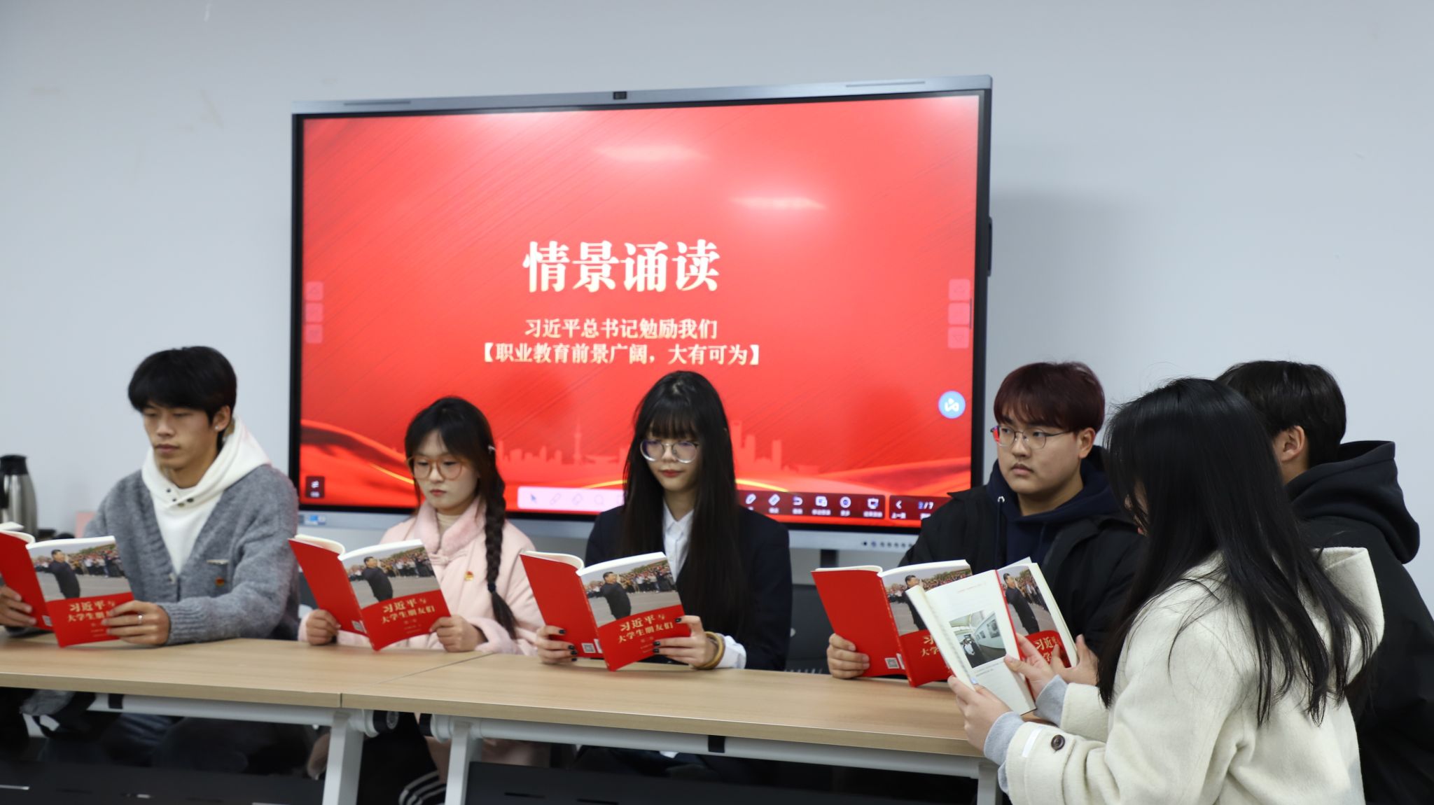 学生代表们通过情景诵读的形式演绎了《习近平与大学生朋友们(第二卷)》习近平总书记勉励我们“职业教育前景广阔,大有可为”的内容,深刻领悟习近平总书记薪火相传的“青年观”、念兹在兹的“青年情”、厚望重托的“青年志”。在主题研讨时,青年学子与关工委教师围绕“职业教育在新时代下的发展趋势与青年学生的职业选择与发展规划”展开热烈讨论,同学们纷纷表示要坚定理想信念,努力学好专业知识,不断提高自身专业技能和综合素质,为职业教育高质量发展贡献自己的力量。