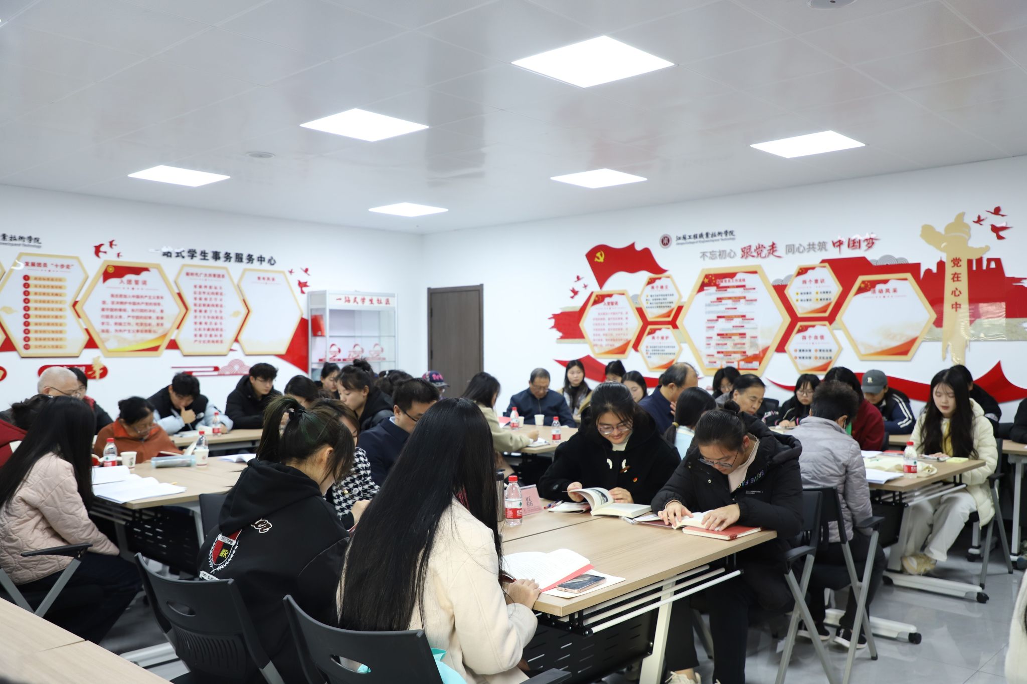 为深入学习贯彻习近平总书记关于青年工作重要论述,引导青年勇担时代使命,以读促思、以读促行,11月27日下午,校团委、关工委在崇川校区一站式学生社区功能室联合举办“银青”共读《习近平与大学生朋友们(第二卷)》读书分享会。校关工委常务副主任季跃东、团委书记徐磊、关工委理论学习辅导组组长刘建明、团委副书记张禧嘉出席活动,关工委老教师和青年团学骨干40余人共同参加。