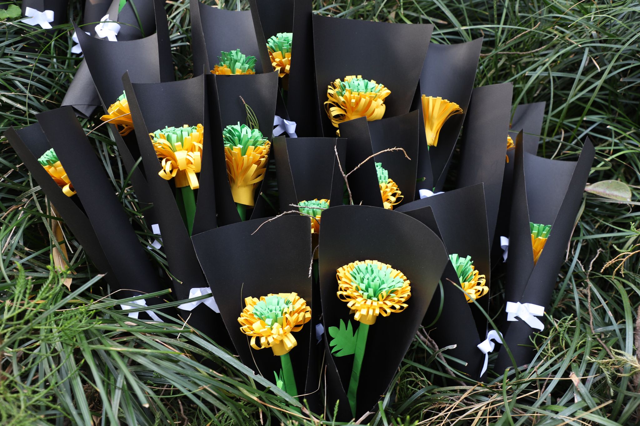 在庄严肃穆的张謇墓前,师生们整齐列队,怀着崇敬的心情举行祭扫仪式。全体人员肃立默哀,向张謇先生墓敬献亲手制作的纸花,表达深切缅怀之情。团员代表骆子晴深情诵读了纪念张謇精神的诗歌,道出了对先贤的无限敬仰。