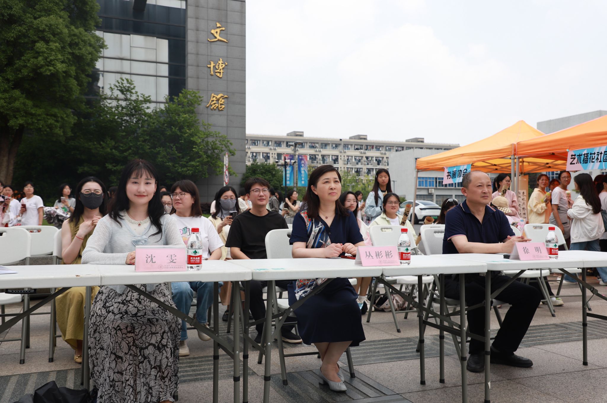 舞台下方,由10余个社团打造的“缤纷格子铺”市集同步开启。织绣阁刺绣社、手工文创社、传统手工技艺和非遗文化社等传统文化类社团展示的团扇香囊、螺钿朱钗、草木染非遗技艺帆布包等文创产品琳琅满目、尽显东方美学。摄影剪辑协会、书画协会、艺术插花社、油画创作社和创意绘画社等兴趣爱好类社团展示了十八般“武”艺、特色鲜明。现场还设置了互动体验区,让师生可以享受到沉浸式的现场体验、趣味十足的游戏互动、干货满满的速成课堂和惊喜连连的礼品放送。此次活动打破传统开幕式“单向输出”的模式,以“参与感”为核心,让师生既能“看表演”,又能“玩体验”,不仅彰显了我校学生社团的创新力与凝聚力,更以“双轨互动”模式探索了高校美育实践的新路径。