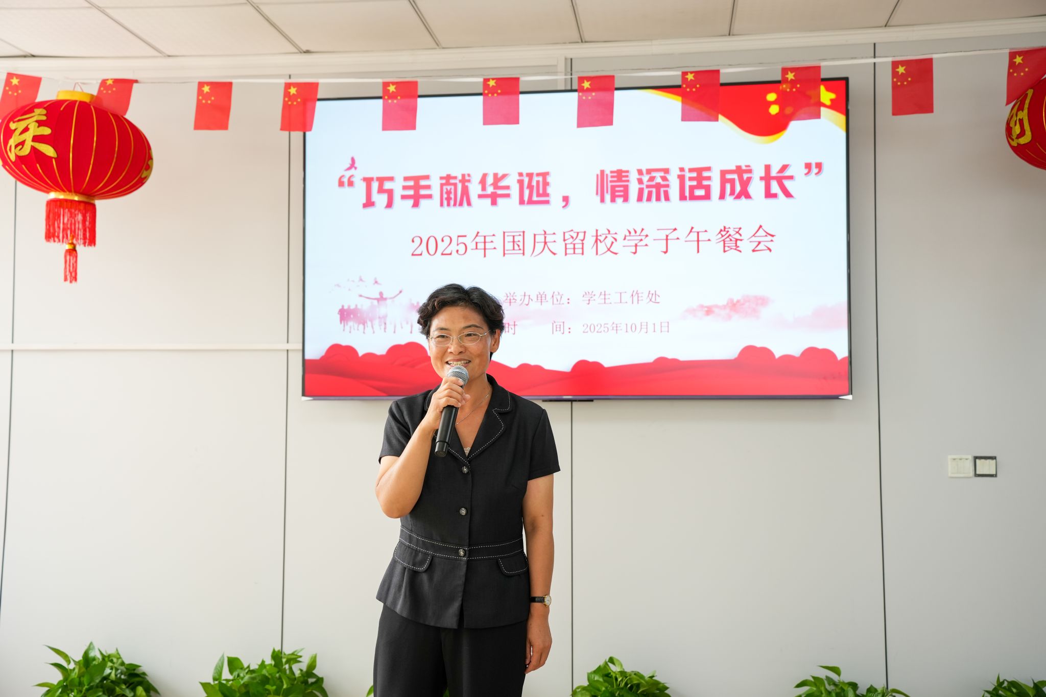 为庆祝中华人民共和国成立76周年,弘扬爱国主义精神,丰富留校学生假期文化生活,促进各民族学生交流交融,10月1日上午,我校于崇川一站式学生社区和学生食堂举办了“巧手献华诞,情深话成长”国庆节手工体验暨留校生午餐交流会。校党委书记钱锁梅出席活动,学工处、团委、崇川校区各二级学院领导及辅导员与40名留校学生代表共聚一堂,共度国庆佳节。