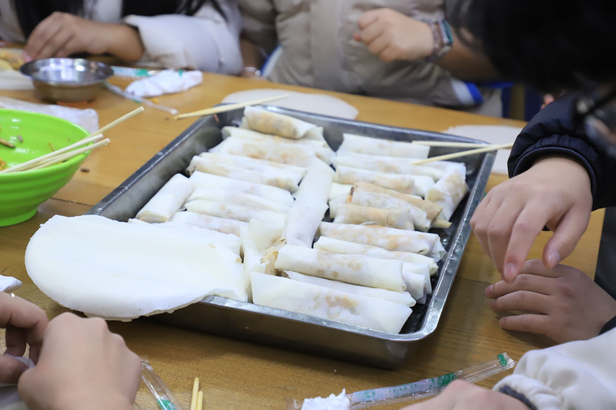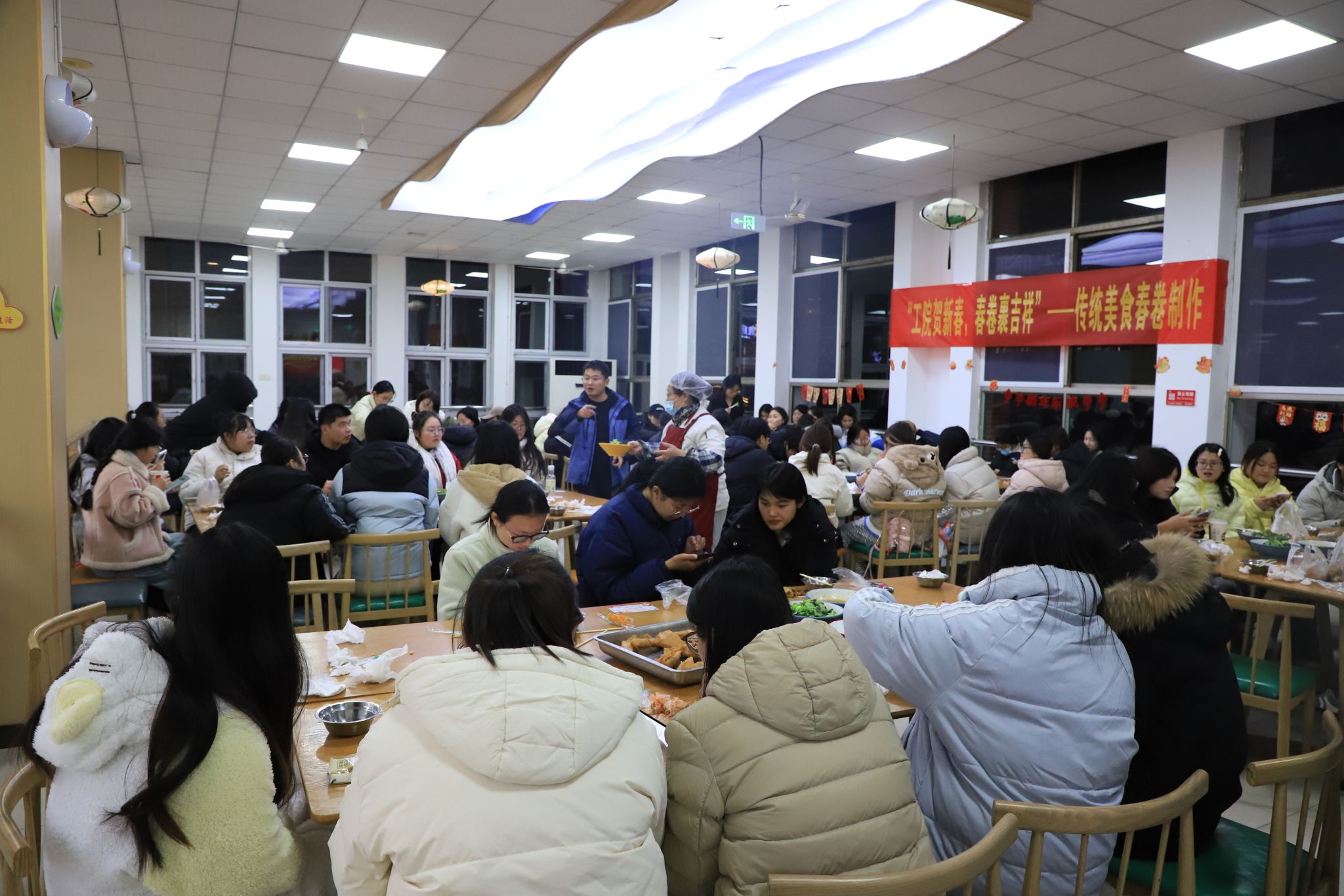 1月2日晚,两校区同步举办传统美食制作活动。在崇川校区,纺织服装学院团总支承办了“春卷迎春”主题活动,师生携手体验春卷制作;在海门校区,智能制造学院团总支承办了“饺香团圆”包饺子活动。活动现场,大家分工协作,擀皮、包馅、烹制,在欢声笑语中体验动手劳动的乐趣,感受传统节俗的魅力,浓浓的“家”味温暖了每一位留校学子。