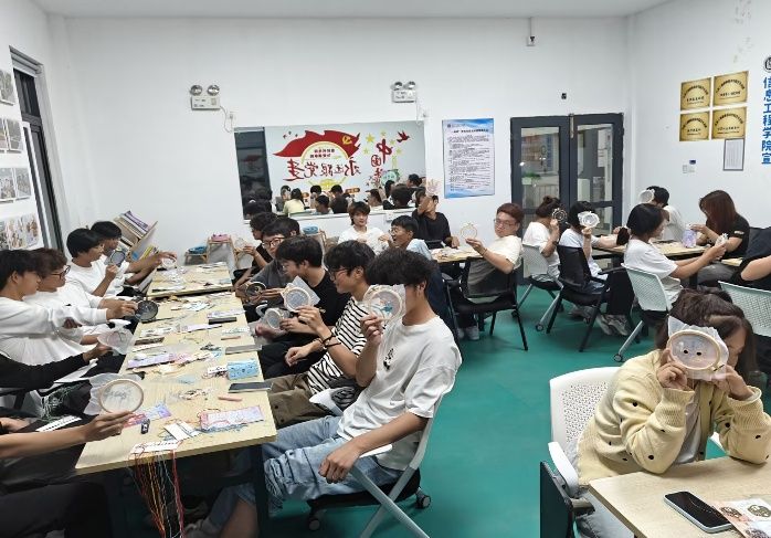 活动现场,同学们围坐桌前,手持绣绷、彩线与绣针,社长严欣悦不仅讲解刺绣工具用法与基础针法,更结合文学意象解读纹样内涵。大家专注穿针走线,空白绣绷上渐渐浮现灵动纹样。互动问答环节中,围绕刺绣相关文学典故的提问引发踊跃参与,让同学们在交流中深化对刺绣文化的认知。