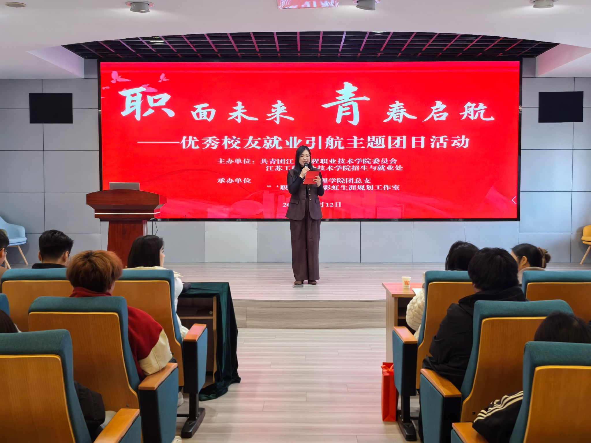 12月12日,由校团委、招生就业处主办,经济管理学院团总支、“‘职’慧豆”彩虹生涯规划工作室承办的“职面未来 青春启航”优秀校友就业引航主题团日活动暨梦想公开课在强毅楼12楼举行。活动邀请校团委副书记张禧嘉、学工处副处长张悦、招生就业处就业指导中心史蓓担任嘉宾,经济管理学院党总支副书记沈峻锋以及100多名学生代表参加了本次活动,活动由学院团总支副书记李慧娴主持。