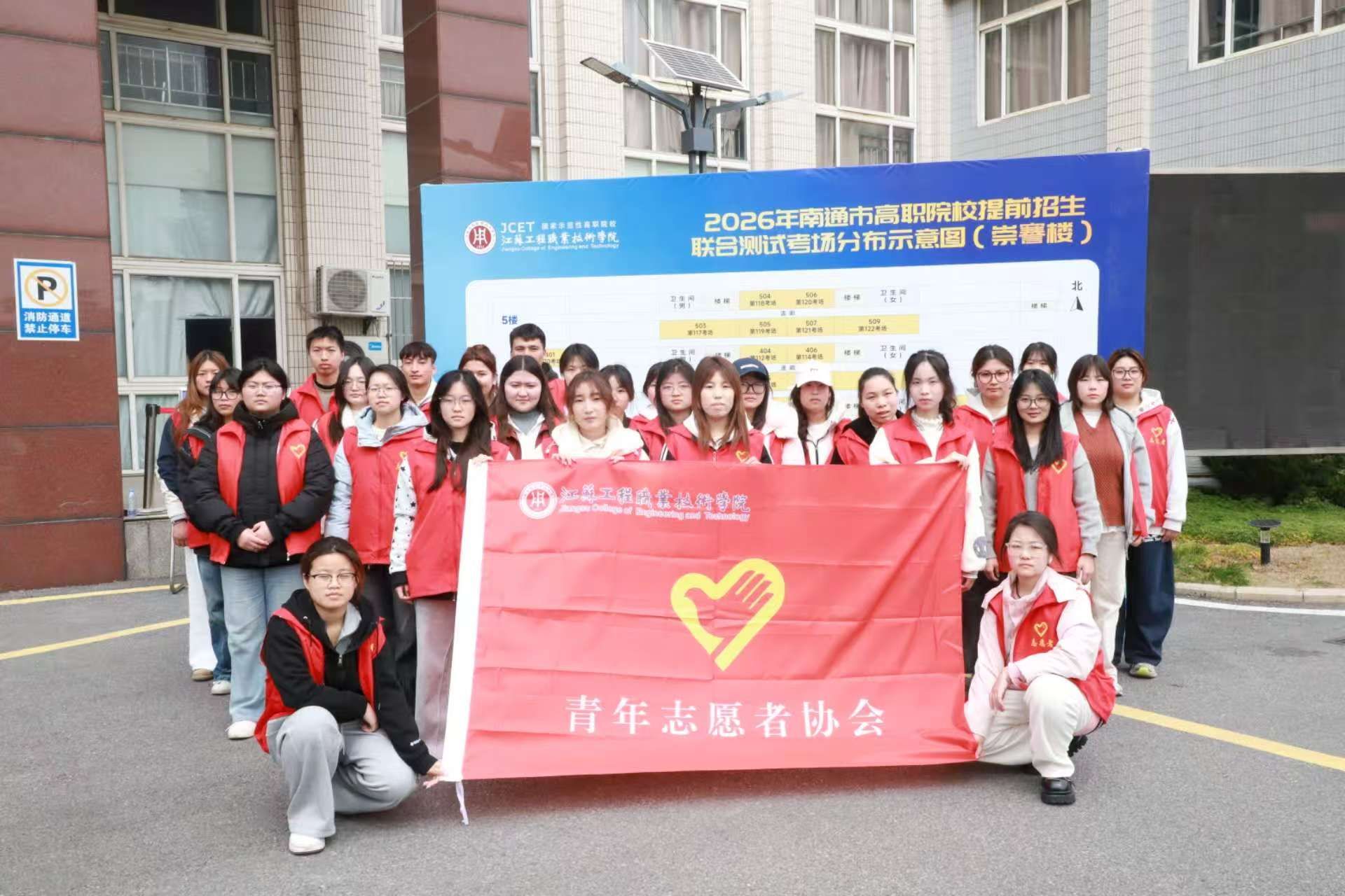 三月春意浓,绿茵燃激情。3月22日,2026年江苏省城市足球联赛热身赛南通场在南通体育会展中心举行,我校128名学生志愿者在2名教师带领下,以饱满热情投入赛事保障工作,成为赛场内外一道亮丽风景线。同一天,校内30名志愿者忙碌于2026年提前招生考试现场,用周到服务温暖考生“赶考路”。两支队伍同向同行,在校内外不同岗位上书写青春答卷。
