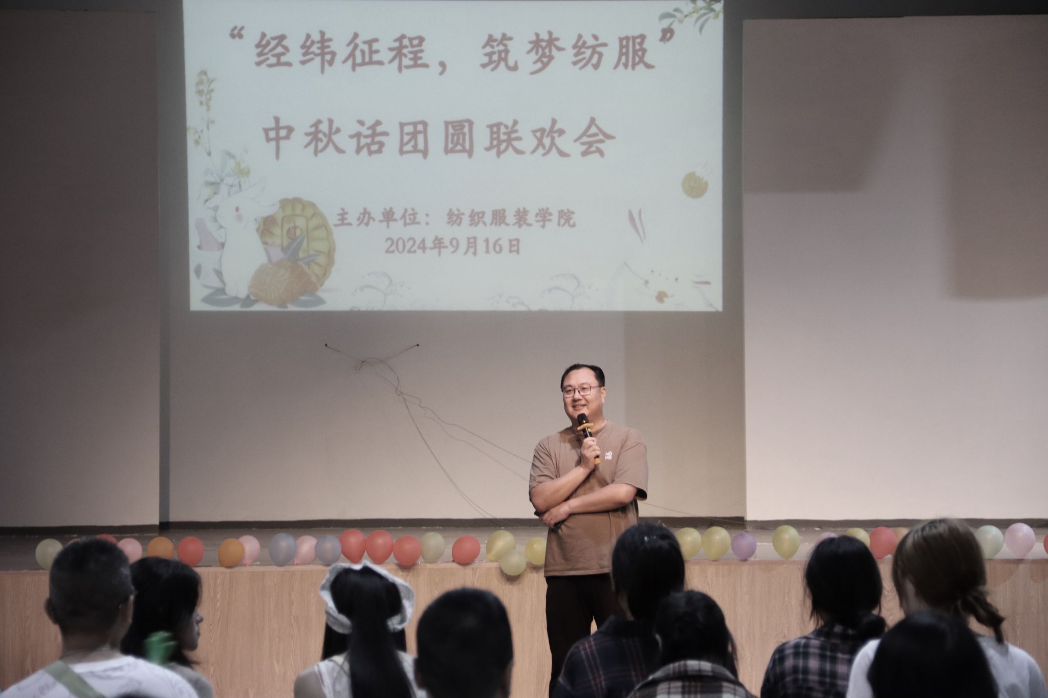 9月16日下午,纺织服装学院“经纬征程,筑梦纺服”中秋话团圆联欢活动在校北区文体馆成功举办。学院党政班子、24级班主任及200余名新生代表参加了此次活动。