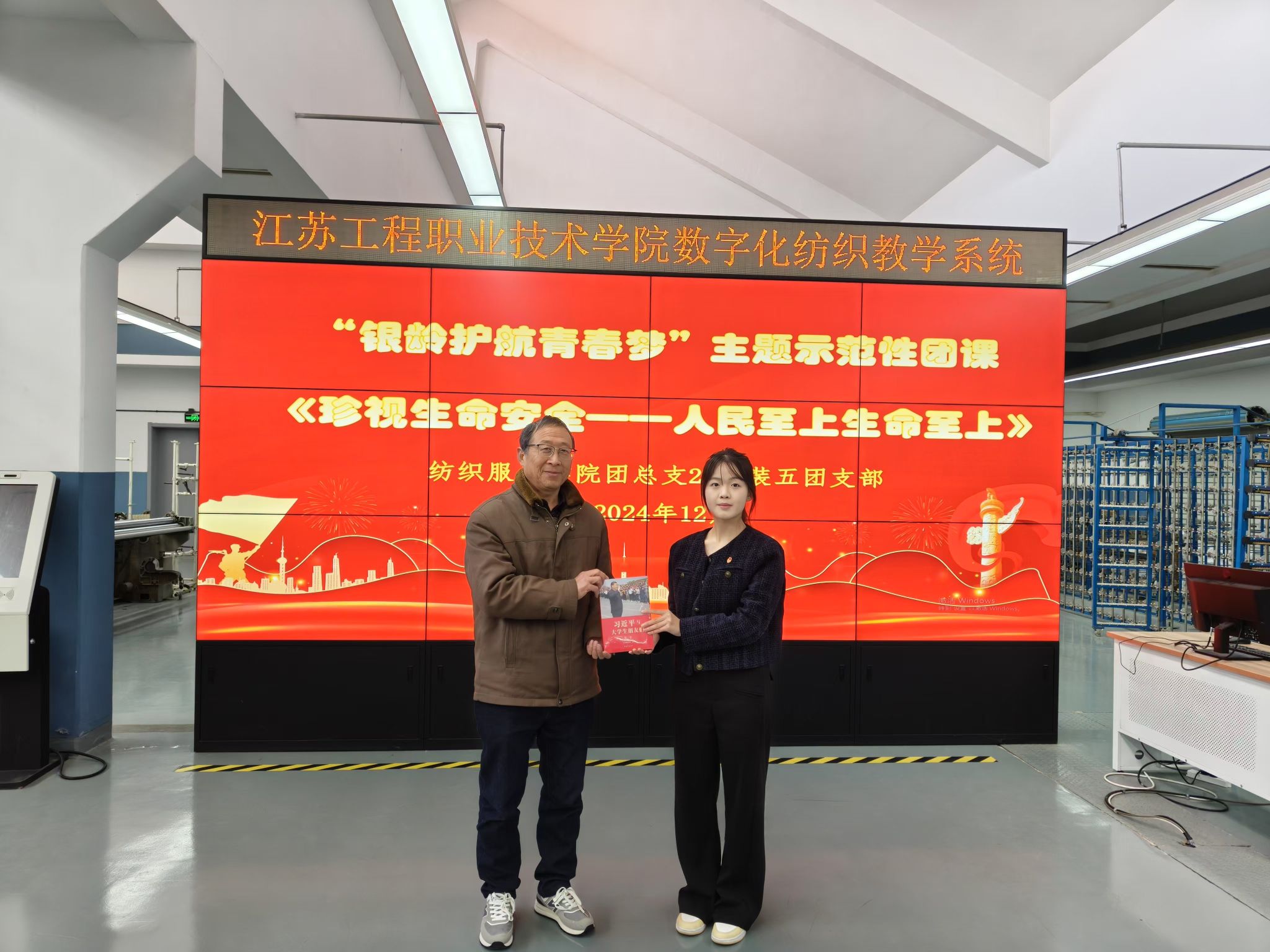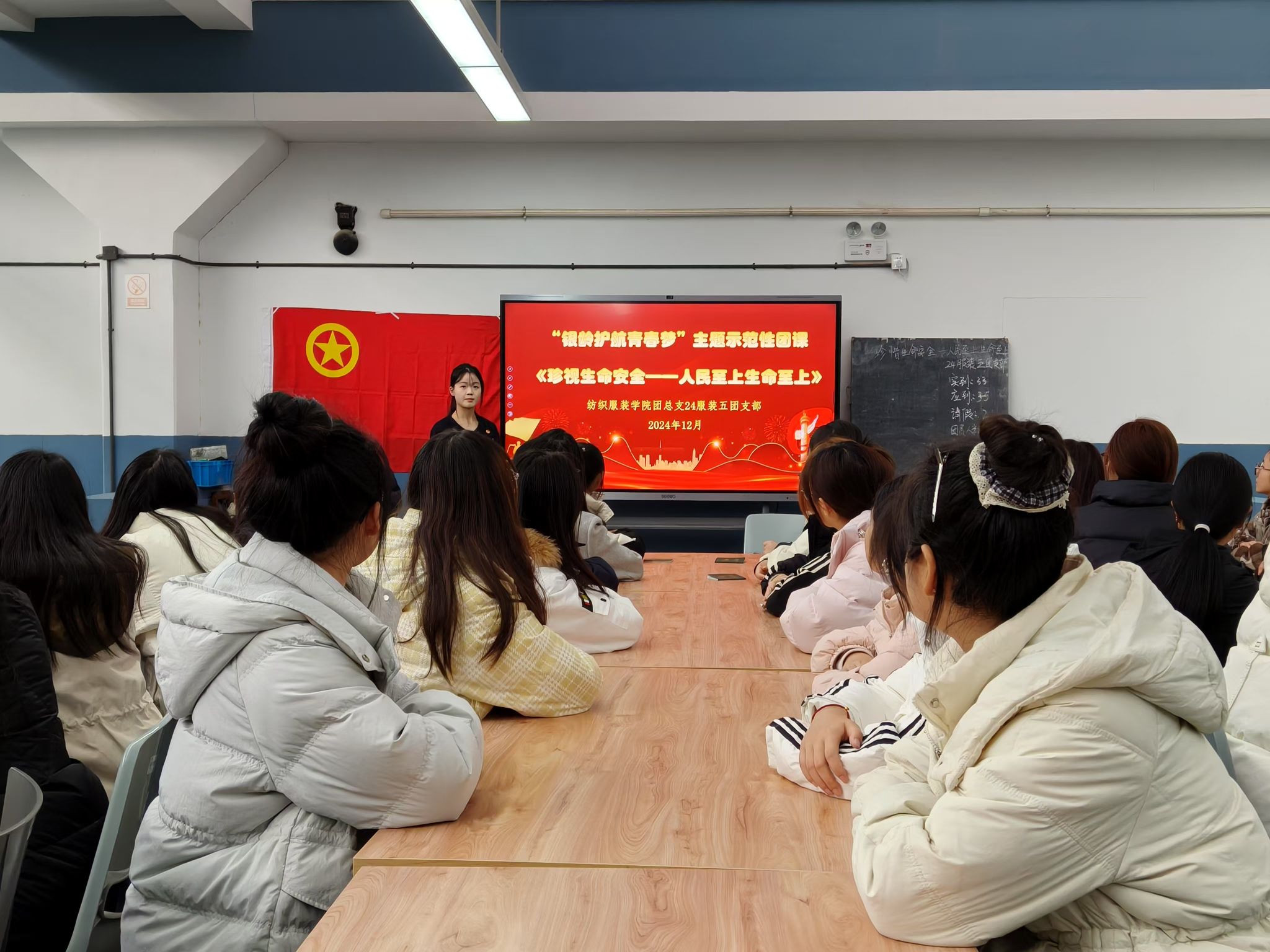 12月18日,纺织服装学院关工委陆锦明老师一行走进24服装五班,指导开展主题示范团课。学院团总支书记周星星、团建指导员黄新颖以及学院团支书代表40余人参加此次活动。团课以“银龄引领安全路,青春逐梦共前行”为主题,通过图文视频展示、现场问答、交流互动等多种形式,让团员青年在学习实践中强化对生命安全的认识,提升自我保护能力。