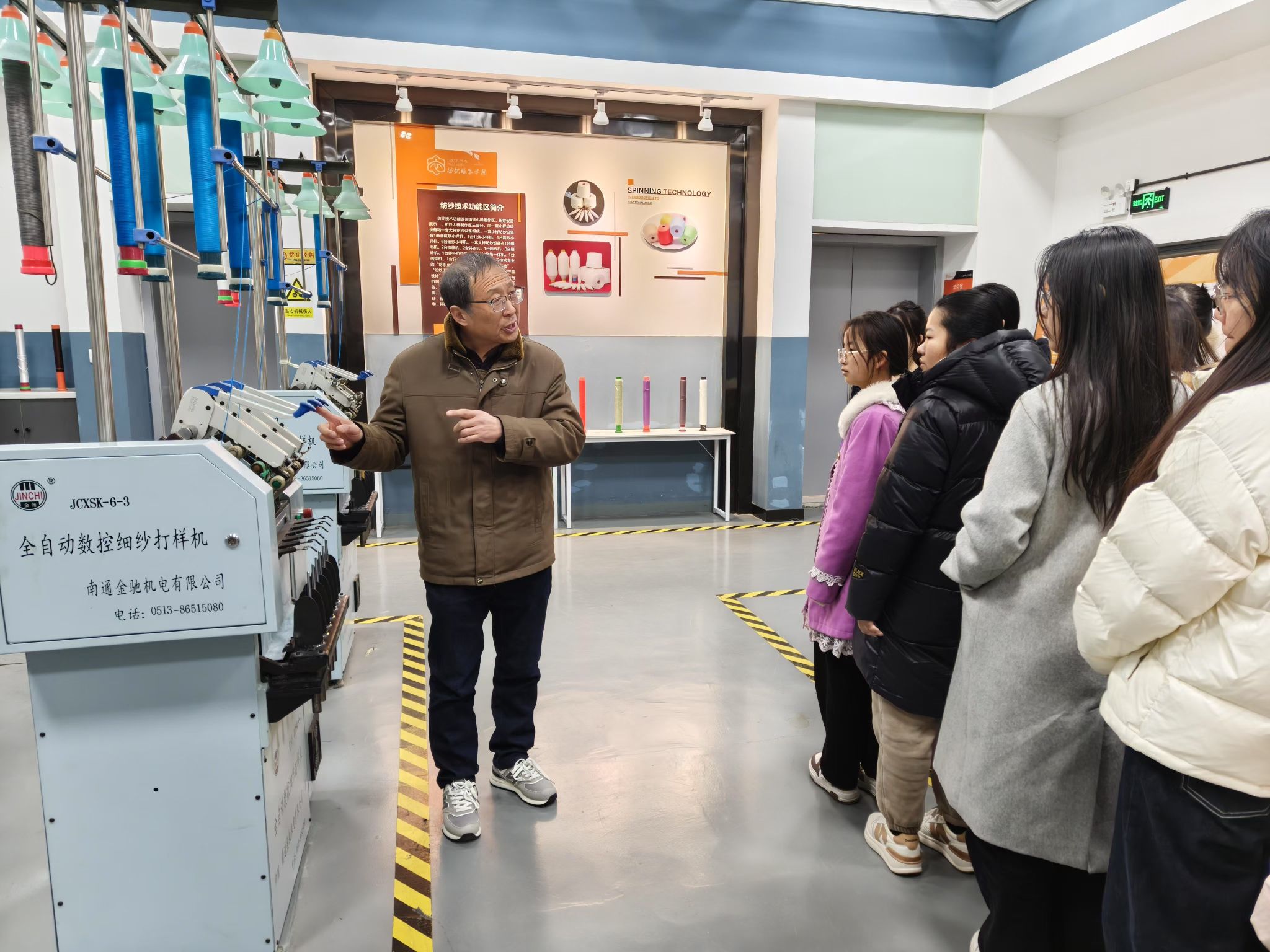 活动中,陆锦明带领同学参观纺织服装实训室,他详细讲解了实训室安全管理制度,包括个人防护措施、紧急事故处理流程、设备安全操作规程等,通过生动案例分析和实例演示,陆老师让抽象的安全知识变得具体而直观,强化了同学们的安全意识和防范能力。讲授中,他鼓励学生们提出自己在实训过程中遇到的安全问题或疑惑,并现场进行解答。这种互动式的交流方式不仅增强了大家的学习积极性,也让他们在实践中不断巩固和深化安全知识。