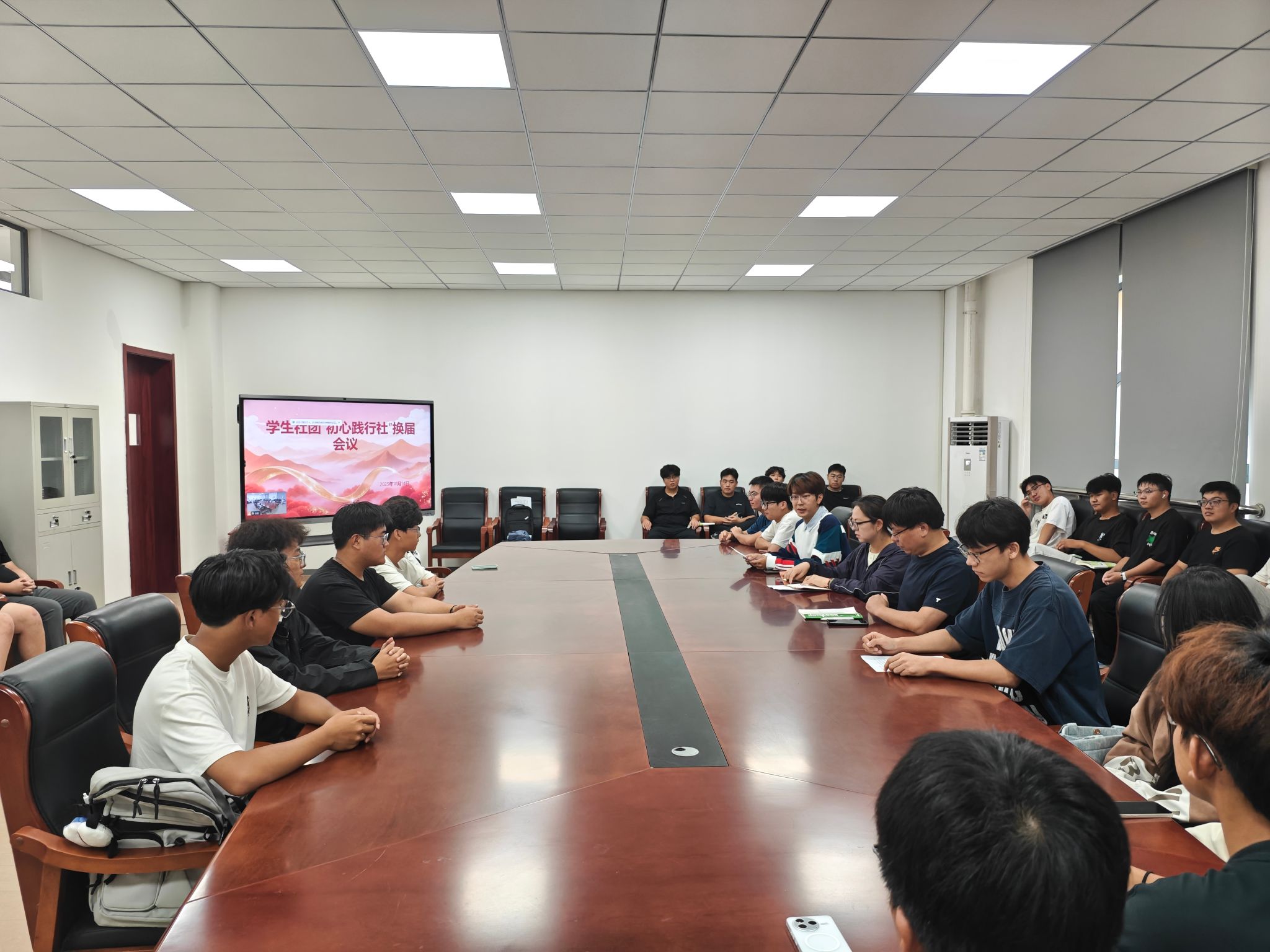 为保障社团工作平稳交接、焕发新活力,10月14日,智能制造学院“初心践行社”顺利召开换届会议。指导老师周天一、保钰,上届社长郭靖、副社长杨杰及新老成员共同参与,新任社长李世奇主持会议。