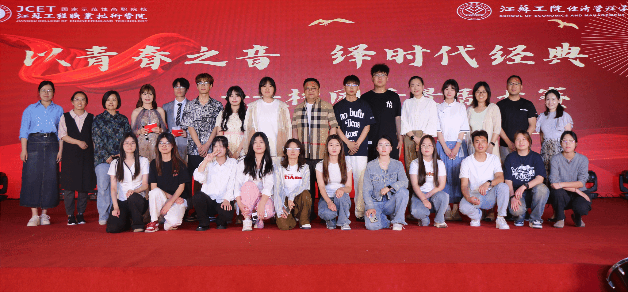 5月29日下午,由共青团江苏工程职业技术学院委员会、关工委主办,经济管理学院团总支承办的大学生文化艺术节“以青春之音,绎时代经典”校园情景剧大赛于崇川校区文体馆落下帷幕。南通师范高等专科学校工会主席许迅、南通市曲艺家协会副主席王美娟、党委组织部副部长宁尚洁、党委宣传部副部长蒋丽华、审计处副处长李强、关工委老同志代表龚媛娟担任本次大赛评委,辅导员以及近300名学生观看了比赛。