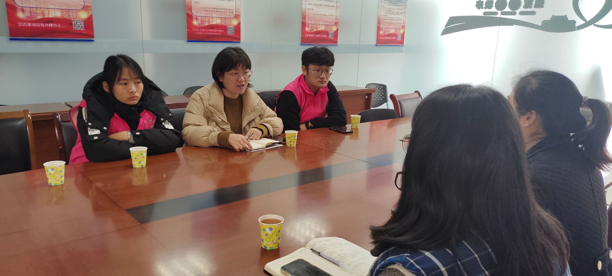 活动中,张晓霞重点分享了学院“养正”志愿者服务团队、“先锋研习社”学生社团以及暑期社会实践“探寻黔文化,共筑传承梦”传统文化考察团的相关品牌活动。城东街道团工委书记李曼重点从“养老助老”、“流动儿童之家”、“非遗传承——蓝印花布”、“老旧小区改造”等方面介绍了城东街道的工作新形势和新任务。双方围绕各自的资源优势与需求进行了深入的讨论和交流。