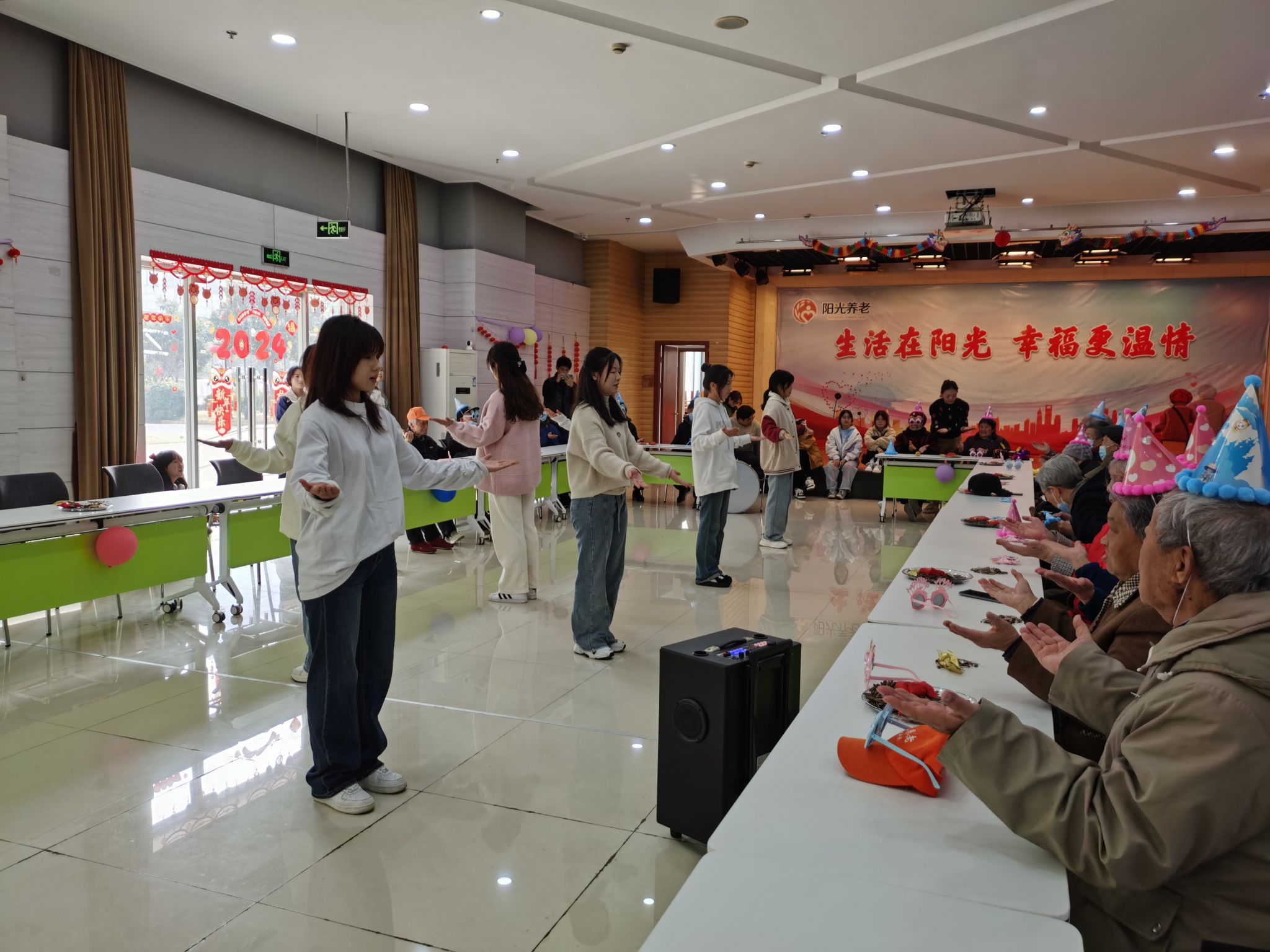 因正值阳光护理院三月生日的长者生日会,活动开始前,志愿者们贴心的为寿星们佩戴生日帽和可爱的生日眼镜。开场一首《A ram sam sam》手势舞拉开了活动序幕。活动中,志愿者们向在座的长者致以最诚挚的生日祝福,与长者们热情互动,贴心地为每位长者送上铿锵有劲的合唱、暖心有爱的手指减压操、简短实用的心理减压知识和甜蜜丝滑的小蛋糕,现场热闹非凡,其乐融融。手指减压操既可以锻炼手指灵活性,还能激发大脑活力。志愿者们进行了详细的讲解,可爱慈祥的爷爷奶奶们全神贯注地进行了音乐跟练学习,手舞翻飞间展现了长者们积极向上的精神面貌。