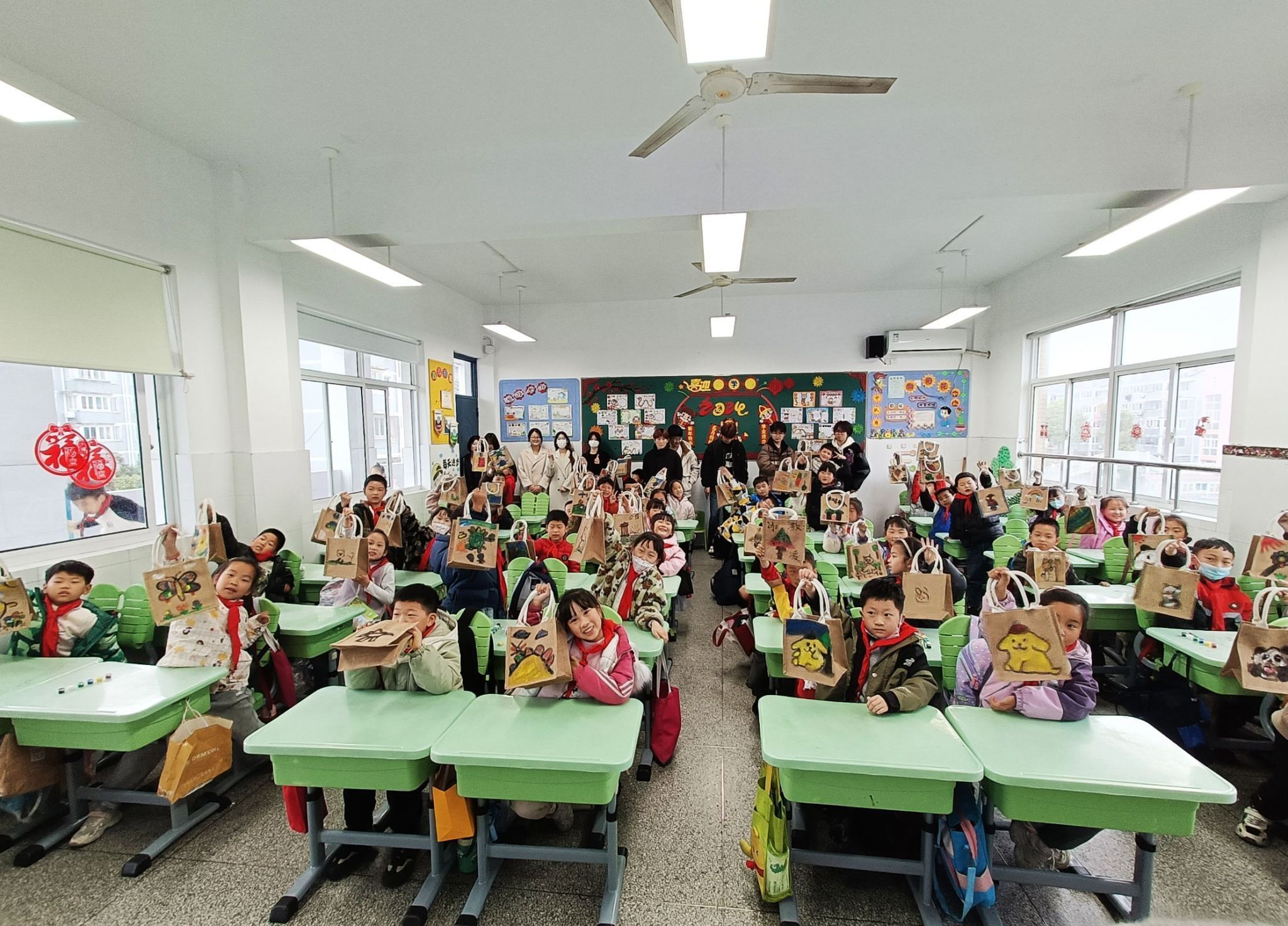 一笔一童心,一画一美景。艺术设计学院学子们充分发挥专业所长,跟二(9)班孩子们一起开启在麻布包上绘画创作。让孩子们通过绘画释放天性、感受快乐。活动中孩子们充分发挥想象力、大胆创作,用手中的画笔描绘出心中所想。