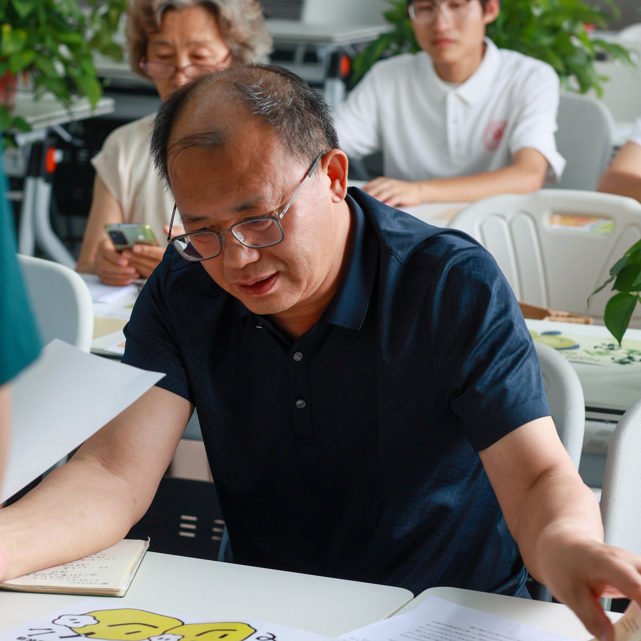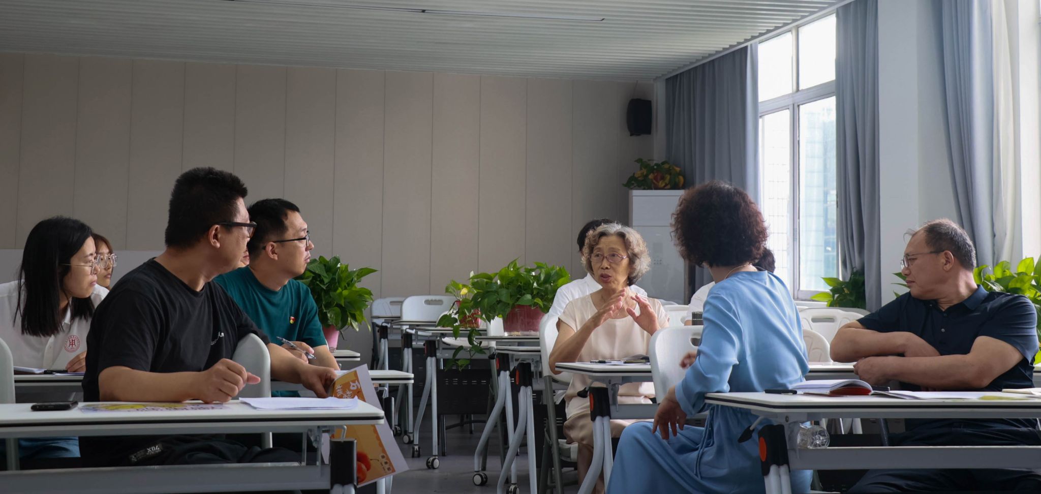 校关工委常务副主任季跃东,校工会主席、离退休处长、关工委秘书长程莉,艺术设计学院院长任健,副院长汪智强,党总支副书记赵喜恒,艺术设计学院关工委常务副主任姜淑媛出席研讨活动,参加研讨活动还有专业教师丁健、许可以及实践团队的老师和学生。