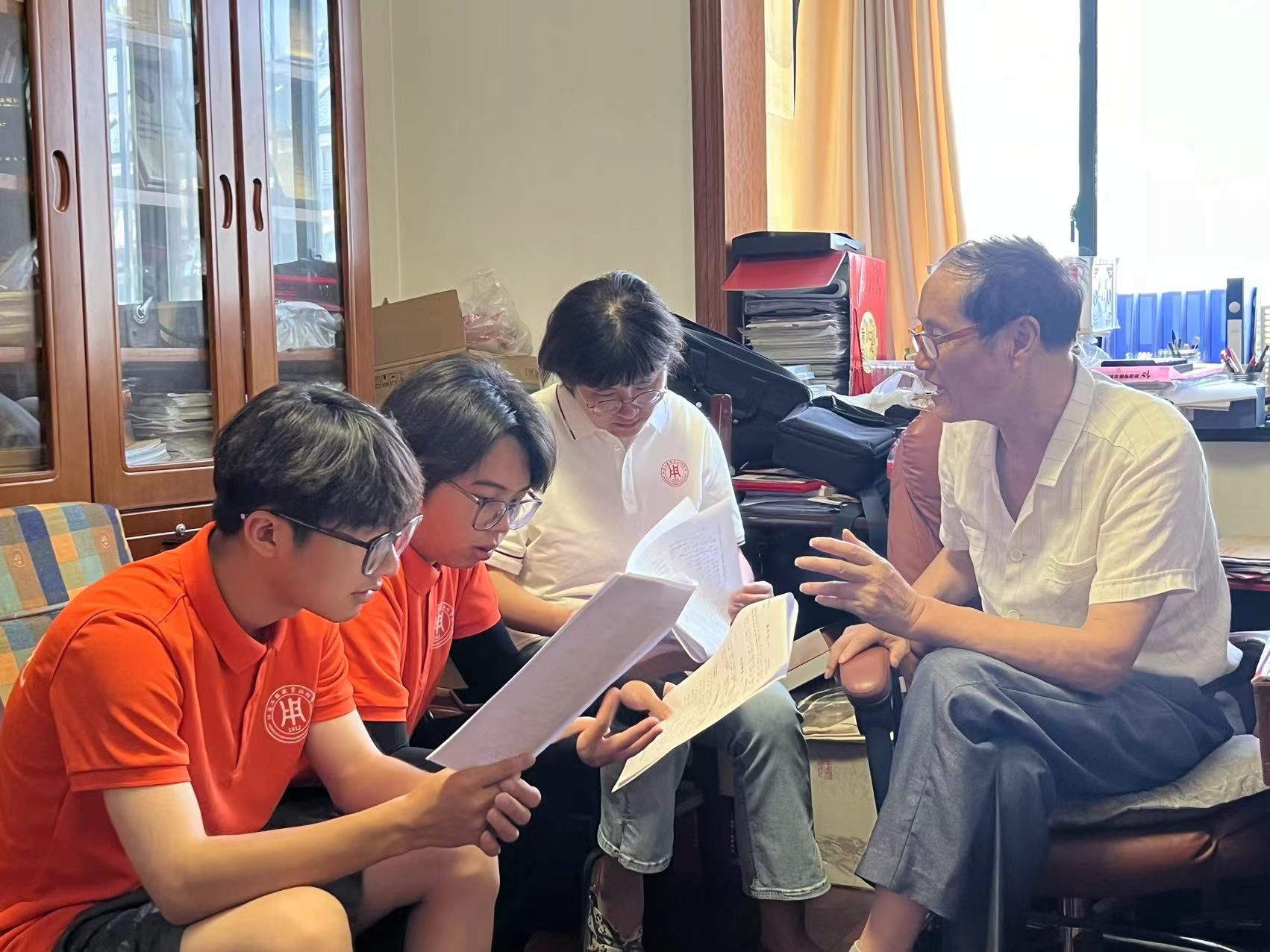 海门山歌代表性传承人崔立民,他在音乐领域有着深厚的造诣,致力于海门民歌的挖掘整理、创作研究、传承教育等工作。在访谈中,崔老师回顾了自己几十年间致力于海门山歌传承的奋斗历程,介绍了海门山歌的分类、音乐特色及其独特的音乐魅力,指导团队成员查看了海门山歌的书籍、曲谱、音频、视频等资料,还亲自上阵为团队成员示范演唱海门山歌,团队成员纷纷跟随他的节奏,满怀兴趣地学唱了几句海门山歌。