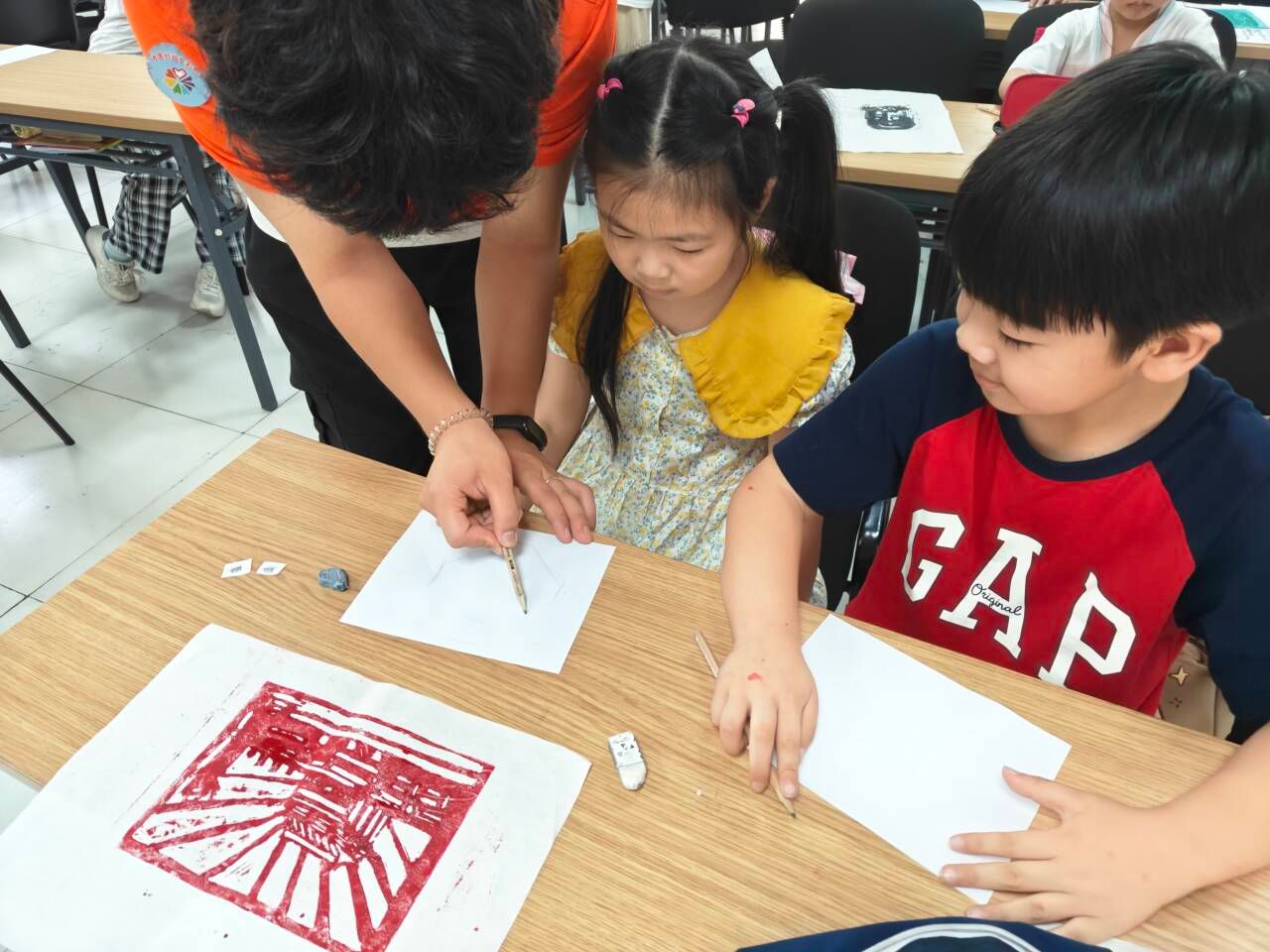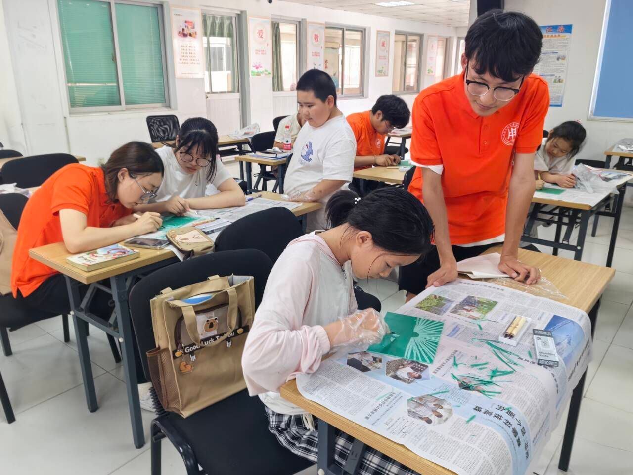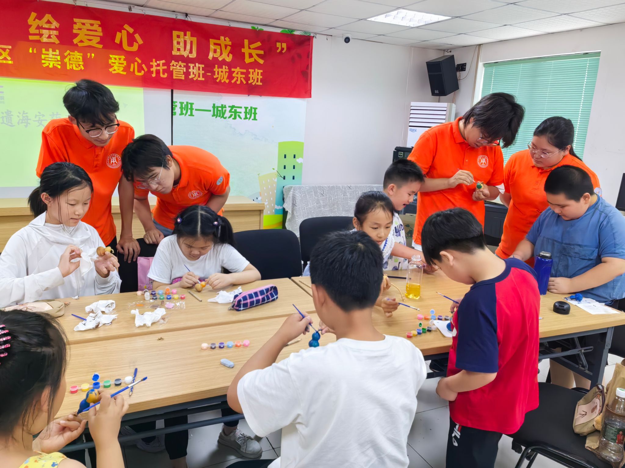 为积极响应城东街道工会“崇德”爱心托管班的号召,加强教育关心关爱、促进青少年全面健康成长,减轻双职工家庭子女暑期教育、看护负担,在7月16日-19日期间,江苏工院艺术设计学院组织“艺匠青蓝,守‘味’筑梦”传统文化实践团和“七彩假期”青年志愿服务团来到东大街社区,积极参与“崇德”爱心托管班志愿服务,在课业辅导的同时,开设传统文化小课堂,让孩子们在完成日常学习任务之余,能够沉浸于中华优秀传统文化的海洋中,实现知识与文化的双重滋养。