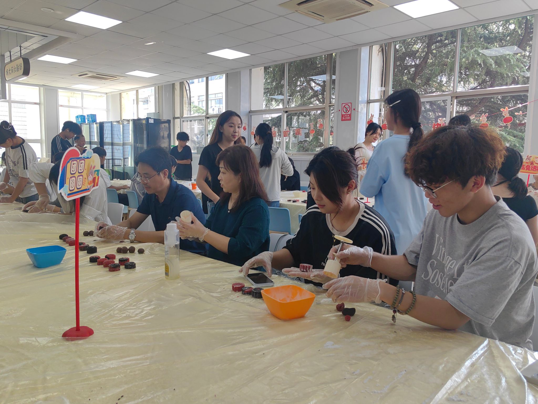 10月6日中秋佳节,崇川校区校园内洋溢着浓浓的节日氛围。由养正辅导员工作室牵头,联合后勤与基建处、艺术设计学院共同举办的“巧手揉月,共话团圆”师生共制团圆月饼活动在学生食堂二楼举行。校党委副书记丛彬彬、副校长郭江峰、艺术设计学院院长任健、党总支副书记赵喜恒出席活动。来自艺术设计学院、纺织服装学院、经济管理学院的四十余名学生齐聚一堂,共度温馨团圆的中秋佳节。