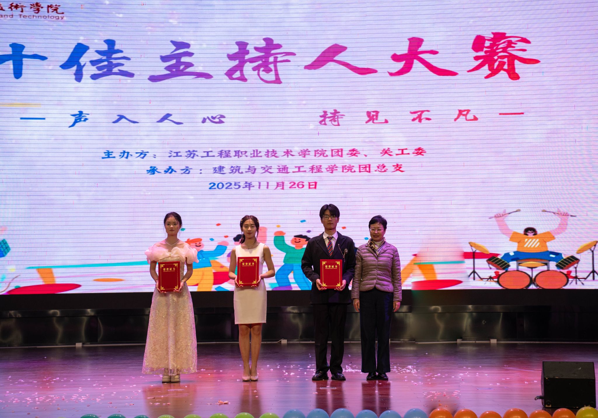 经过激烈角逐,16名选手脱颖而出晋级决赛。赛事采用逐级晋级制,设模拟主持、即兴演讲两大环节。模拟主持环节中,选手两两组队围绕“迎新晚会”“校园文化艺术节”“少儿节目”等主题协作展示,既彰显个人主持功底,更体现了团队默契与现场掌控力;即兴演讲环节,选手言辞灵动、妙语连珠,持续点燃现场氛围,将赛事推向高潮。最终,信息工程学院许琪晗斩获冠军,建筑与交通工程学院徐颖夺得亚军,智能制造学院徐景颐获得季军。