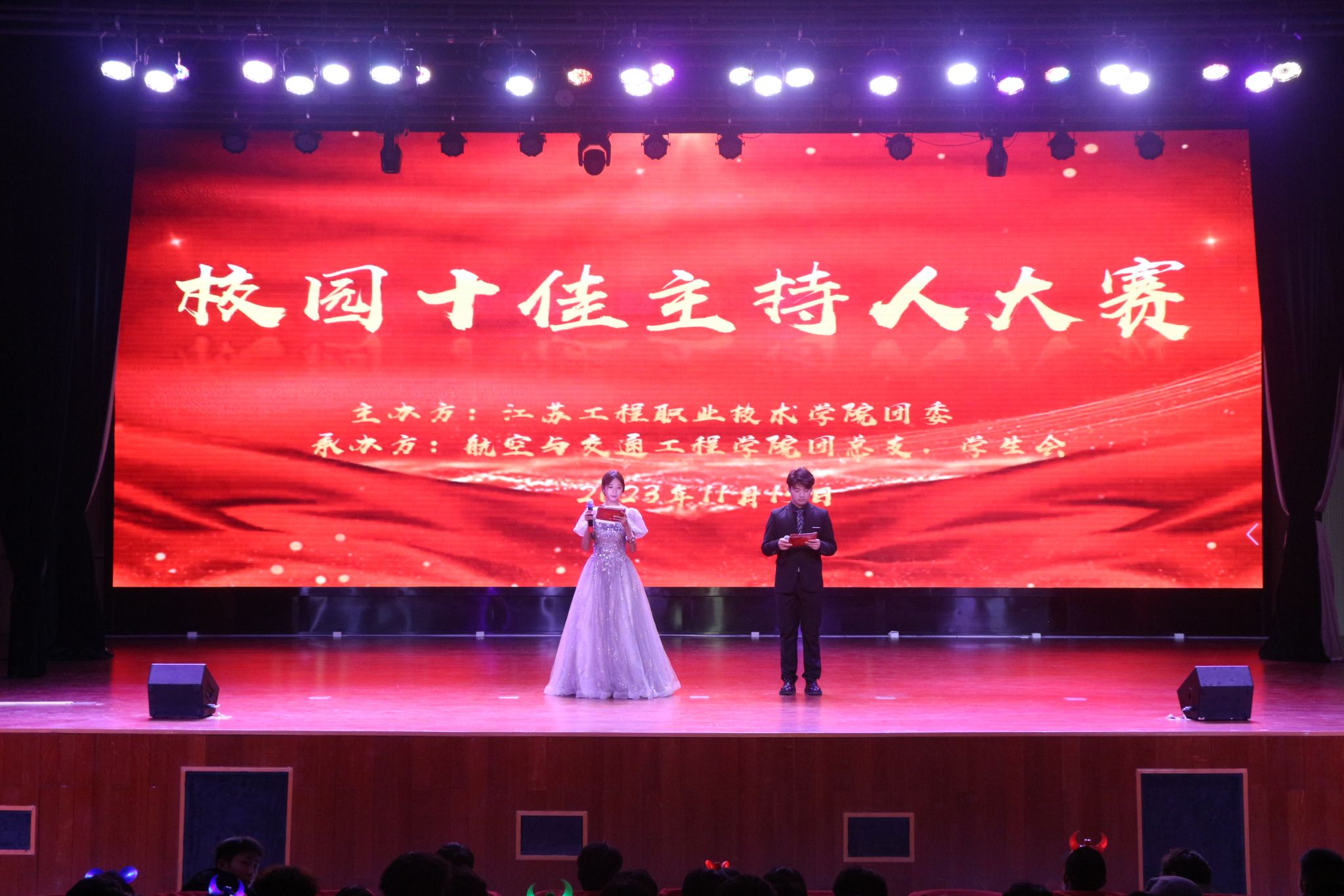 奋斗有我,新声绽放。11月15日,由校团委主办、航空与交通工程学院团总支、学生分会承办的海门校区校园十佳主持人决赛在海门校区800人报告厅顺利举行。基础教学部主任胡革、艺术设计学院党总支书记彭曼、校组织部副部长宁尚洁、纺织服装学院党总支副书记刘桂阳、海门港新区党群工作局一级科员张榛出席活动并担任评委。航空与交通工程学院党总支书记曹钰、校团委副书记沈雯、航空与交通工程学院党总支副书记陈益飞、校学工处工作人员、海门校区各二级学院团总支书记以及各二级学院学生代表近800人参加了本次活动。