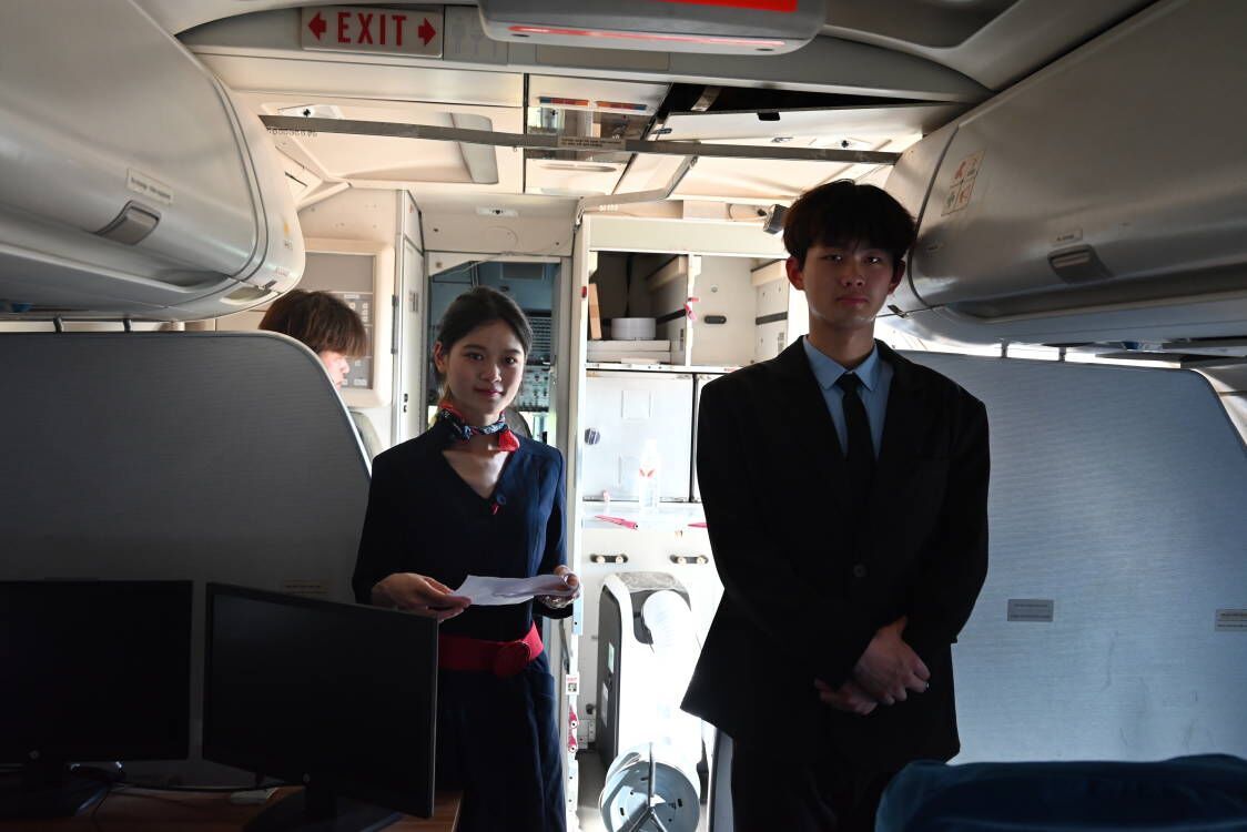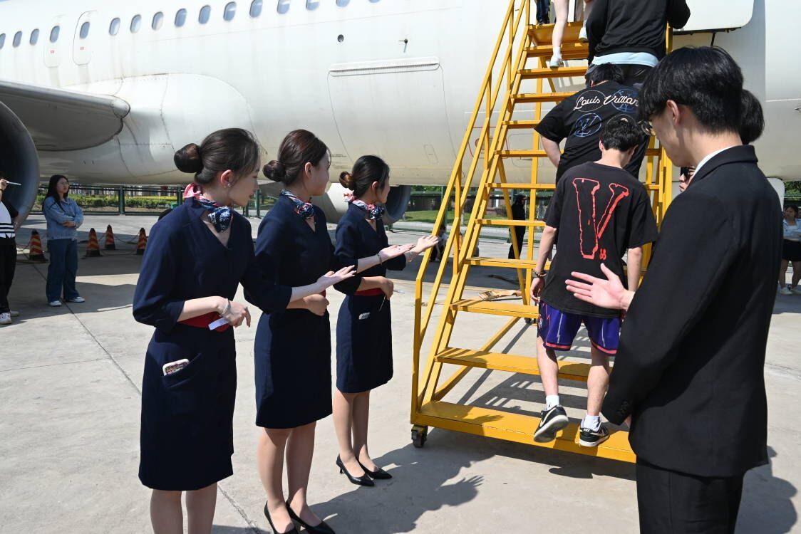 活动当天,飞机维修专业负责人连亮给同学们讲解了飞行的基本原理、航空历史、飞机结构等知识,空乘专业的同学现场展示了空乘礼仪、安全检查操作等,讲解员志愿者们带领同学们走进空客A320客舱、驾驶舱进行参观和体验。“这真是一场超棒的体验。”“今天我好像也当了一回飞行员。”22民航安全三班学生汪欣激动地说。