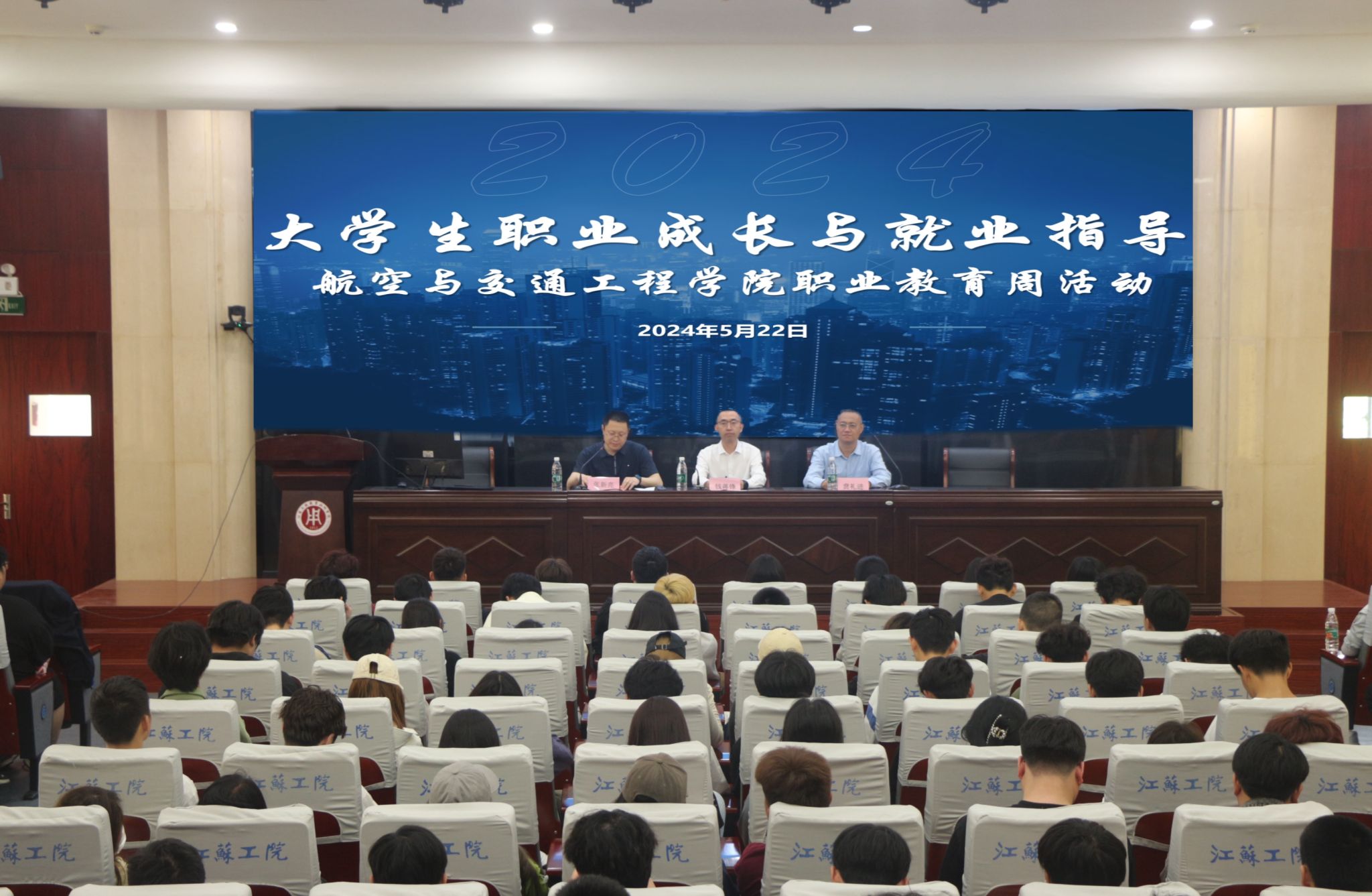为引导大学生科学规划职业生涯,提升个人职业规划能力和就业竞争力,奠定未来职业发展的基础,5月22日下午,航空与交通工程学院《大学生职业成长与就业指导讲座》在海门校区200人报告厅开讲。中天科技集团人力资源部总经理、江苏省产业教授、南通市劳动模范钱蒋锋专题授课,航空与交通工程学院院长贲礼进、副院长张新亮出席活动,学院22、23级200名学生和老师代表聆听了讲座。