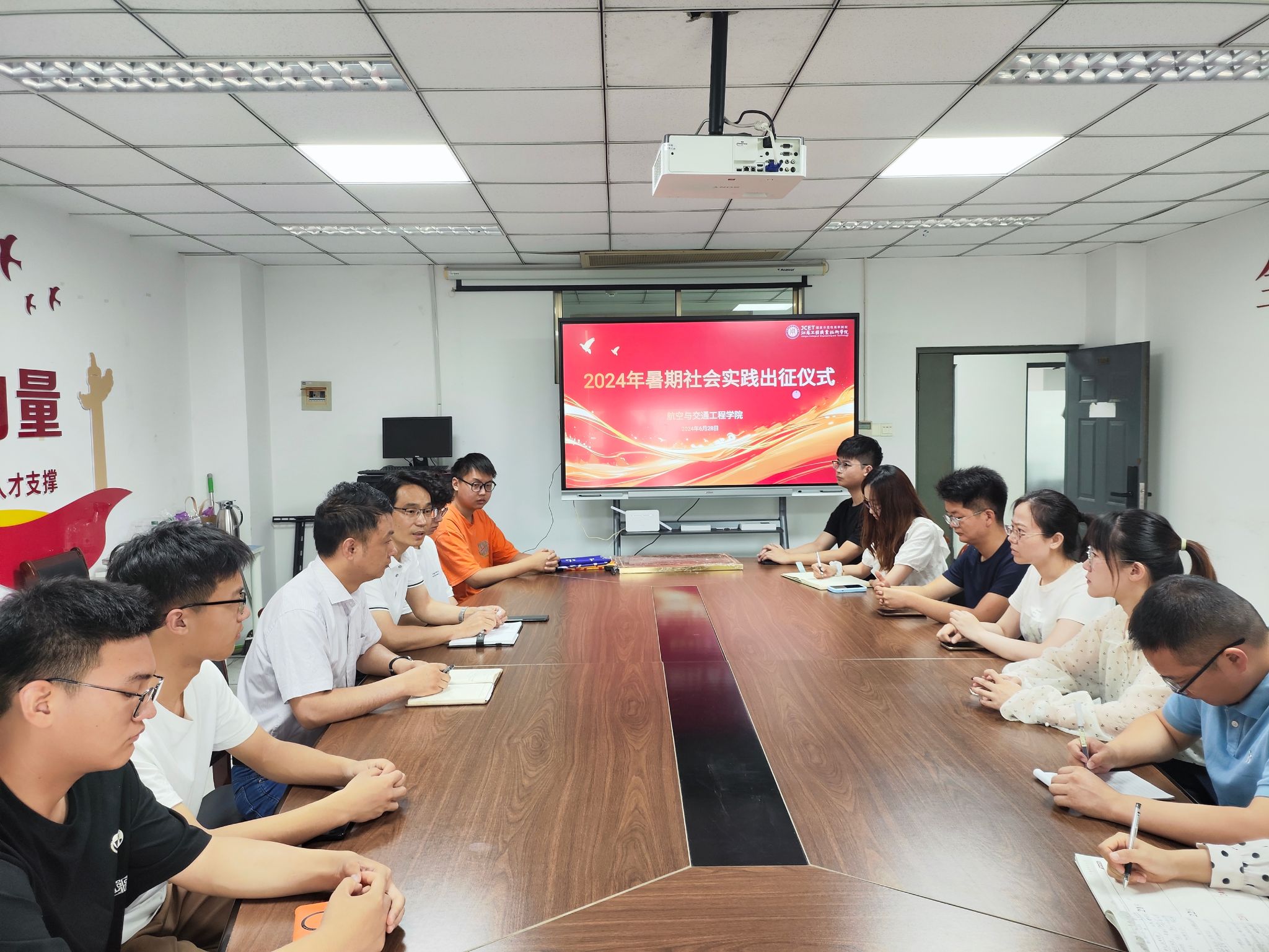 6月28日,航空与交通工程学院在强毅楼11楼会议室举行2024年暑期“三下乡”社会实践出征仪式,航空与交通学院党总支书记曹钰、副书记陈益飞、暑期社会实践各团队指导老师和学生代表参加了本次活动。