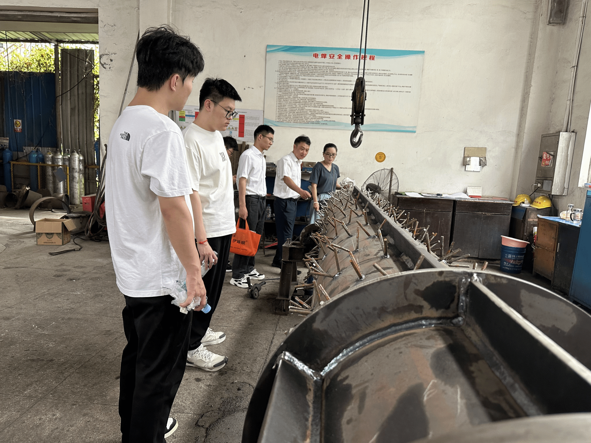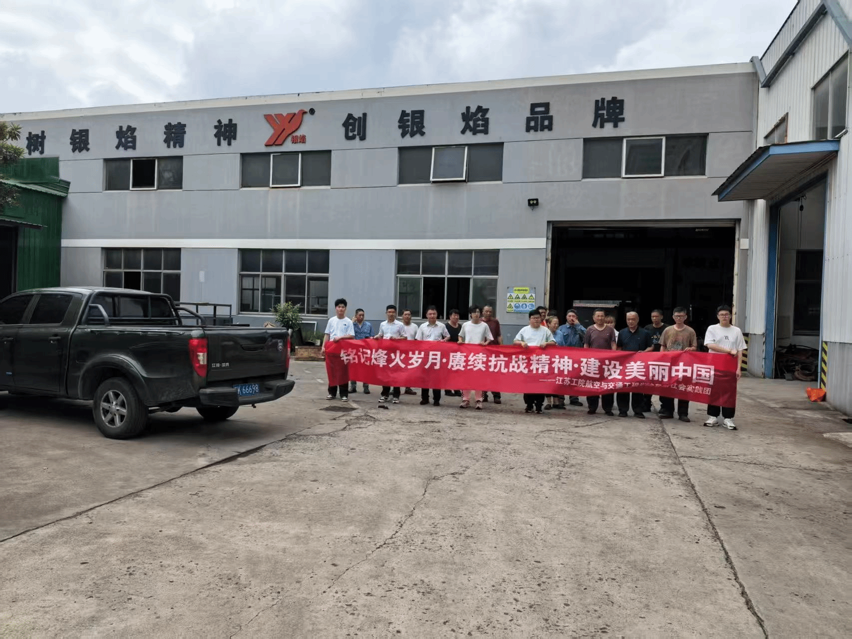 最后一站实践团将学习阵地延伸至产业前沿——扬州市银焰机械有限公司。这家创立于1998年、专注于回转窑燃烧器研发生产的行业翘楚,为学子们打开了认知现代工业的窗口。成员们深入生产车间,近距离观察先进的生产设备与智能化的高效运作流程,对企业的技术实力与精益管理赞叹不已。值此抗日战争胜利80周年之际,实践团特别策划了主题宣讲活动。成员们精心准备,运用丰富的历史资料以及所学专业知识,为公司员工带来了一场主题鲜明、震撼心灵的抗战历史回顾,深刻阐释了伟大抗战精神的时代价值,引发了现场听众的强烈共鸣。此次参访不仅让青年学子直观了解了现代企业的运作模式和发展前沿,拓展了就业岗位,更在产业一线成功实现了红色精神的有效传承与专业知识实践应用的深度融合。