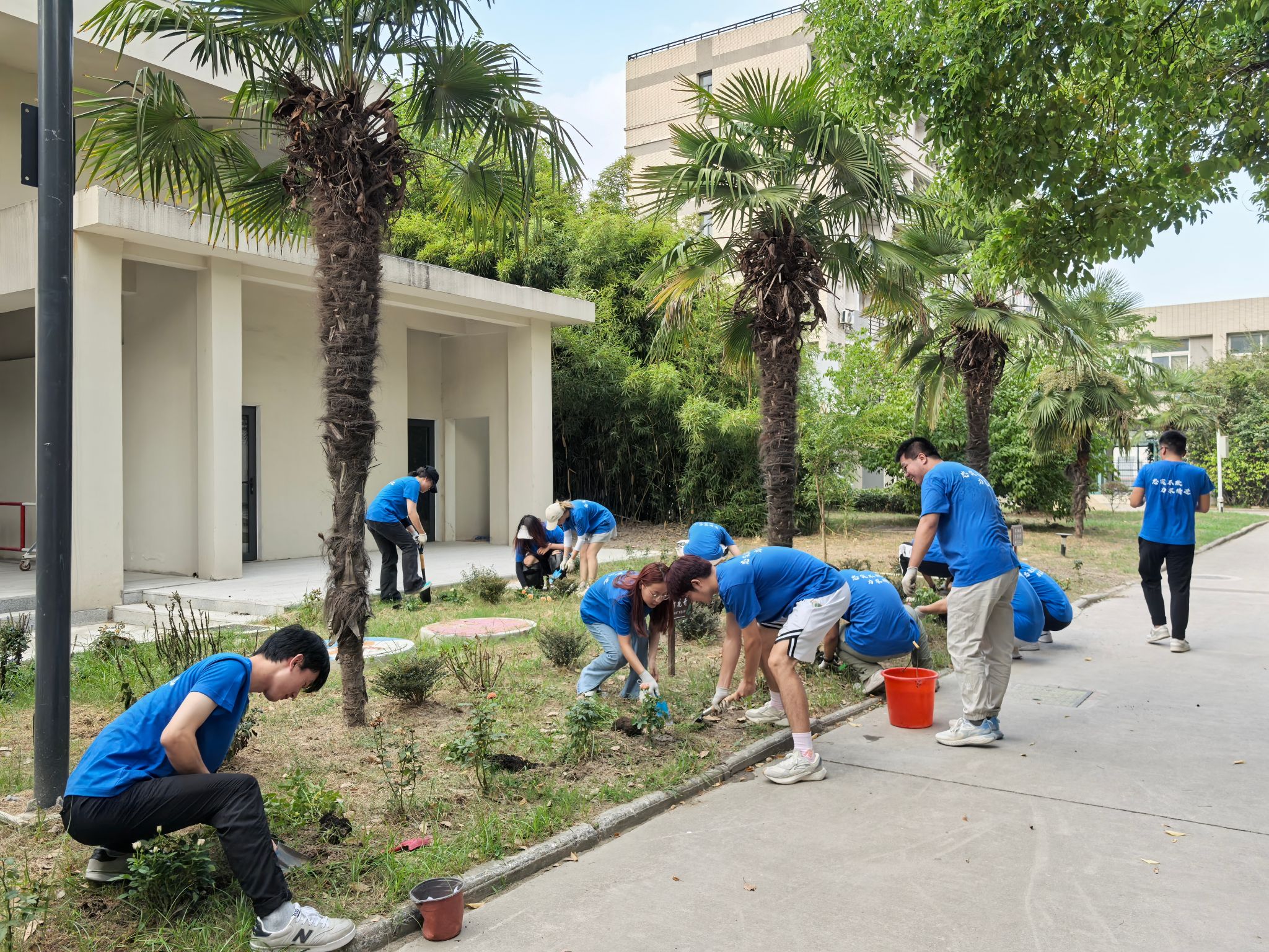 主题活动分别在崇川广生社区和海门阜生社区开展。活动期间,韩政给大家讲解了教师节的由来和新生社区的划分,要求同学们分工合作,以实际行动为建设美丽校园出一份力。一部分学生将园艺盆栽送到“一站式”学生社区服务大厅,精心装饰老师办公环境,表达对老师的感恩之情;另一部分学生将园艺绿植栽于新生社区空地和花箱,帮助绿化美化新生的生活环境。