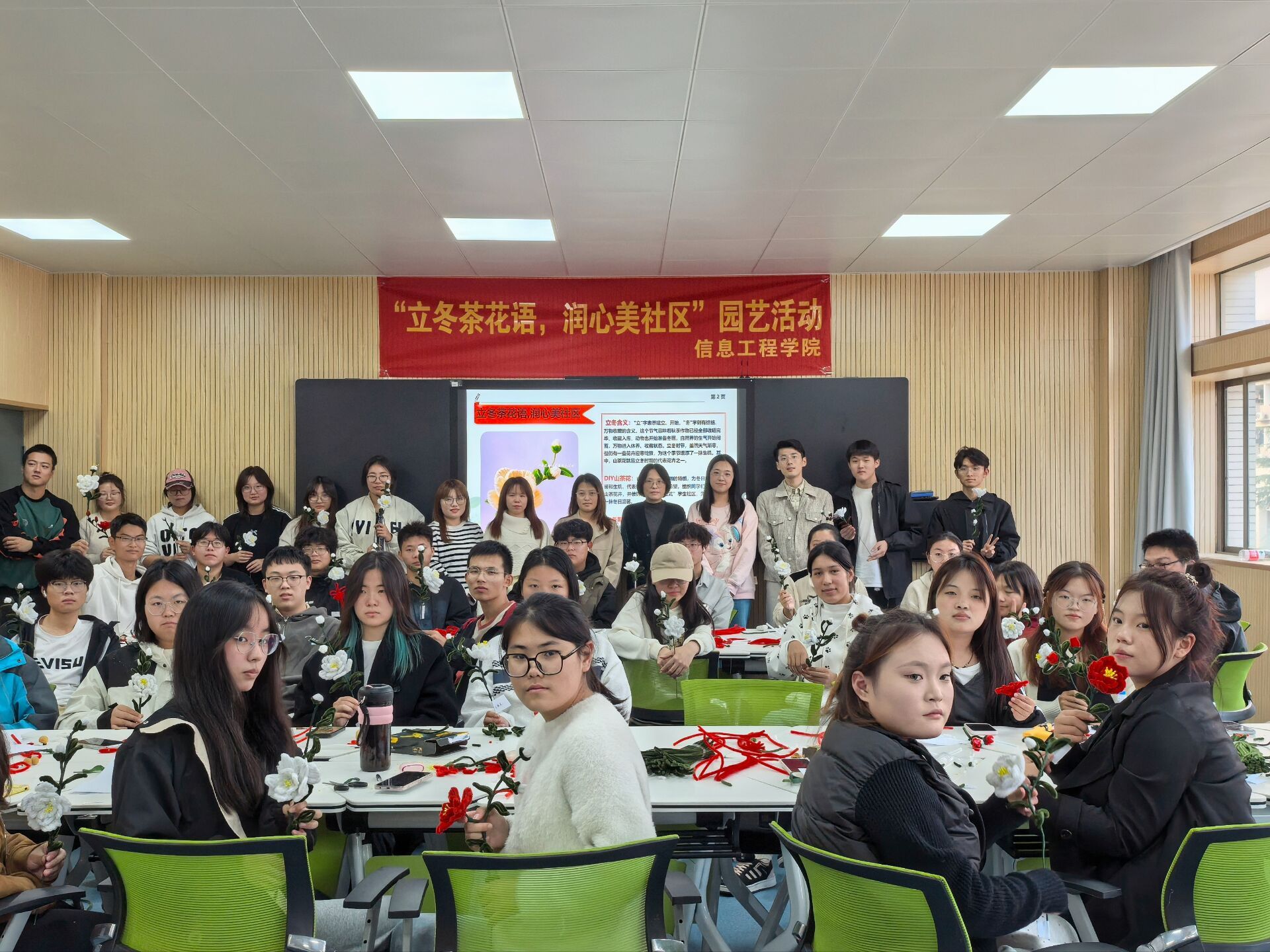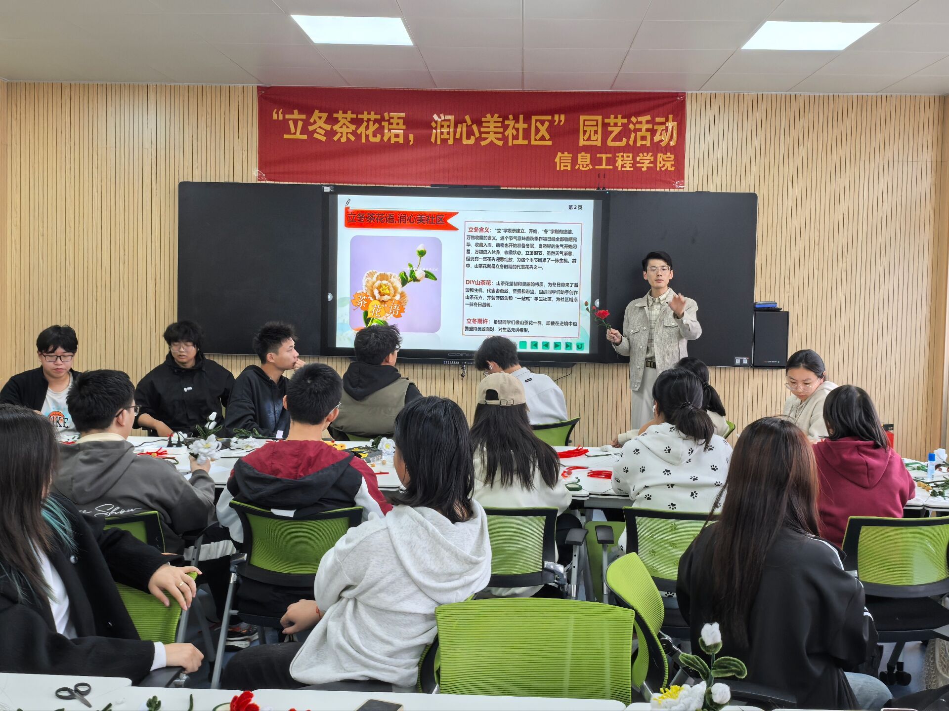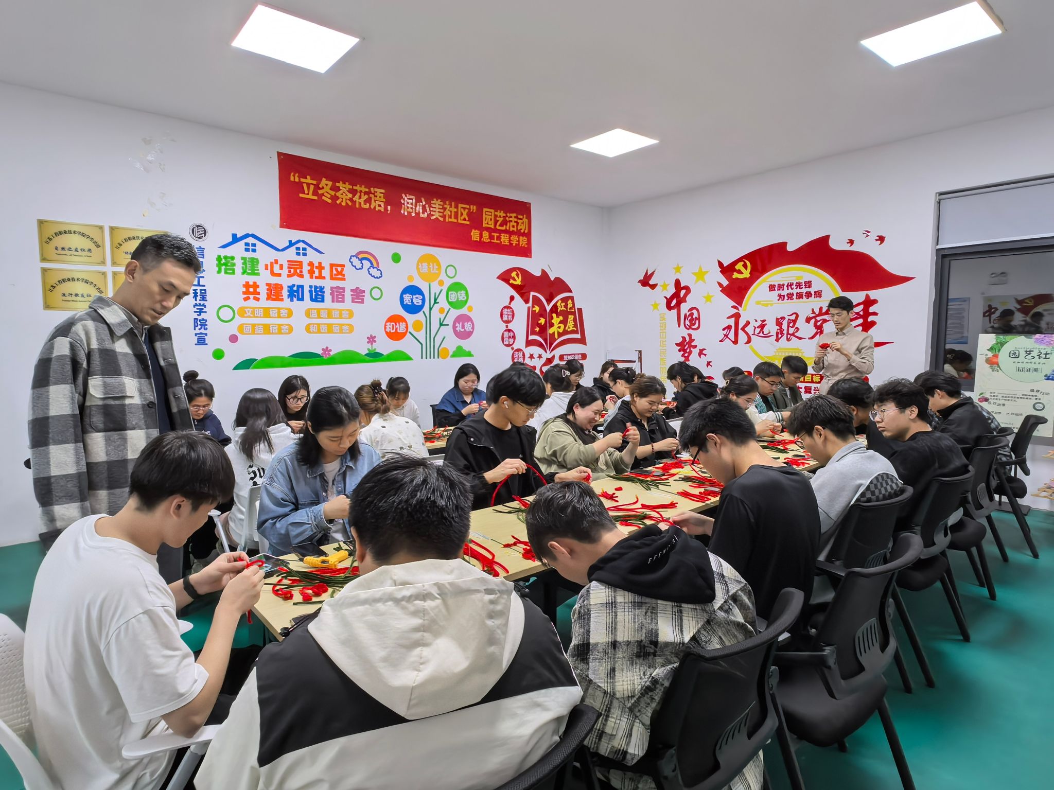 为深化“一站式”学生社区建设,挖掘中华传统节日文化内涵,11月13日—15日,信息工程学院“绿意育人”园艺社团和红石榴辅导员工作室在崇川、海门两校区学生社区举办“立冬茶花语,润心美社区”活动。信息工程学院党总支副书记高飞、学工处詹蕾老师、相关学院辅导员和学生代表参加活动。