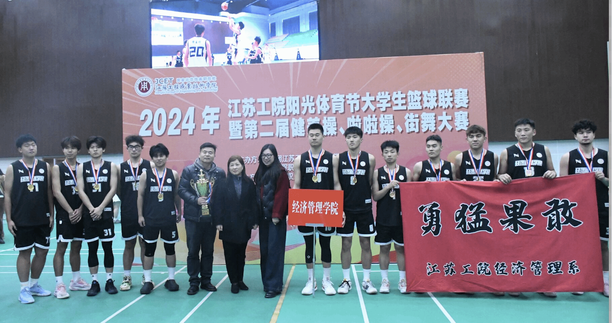 本次大学生篮球联赛是学校新生季系列活动之一,分小组赛和交叉赛两个阶段。小组赛阶段采用抽签方式分AB两组进行循环赛,各小组按积分前两名进入交叉赛。自11月下旬以来,经历6个比赛日13场比赛的激烈比拼,经济管理学院代表队战胜航空与交通工程学院代表队,夺得冠军;建筑工程学院代表队战胜智能制造学院代表队,获得季军。经济管理学院代表队教练金根竹获“优秀教练员”,努尔兰江·阿布来提获“2024年江苏工院大学生篮球联赛MVP”。